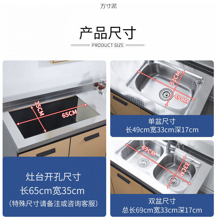 스테인레스 스틸 캐비닛 주방 캐비닛 간단한 조립 경제적 인 임대 통합 캐비닛 보관 캐비닛 찬장 스토브 캐비닛