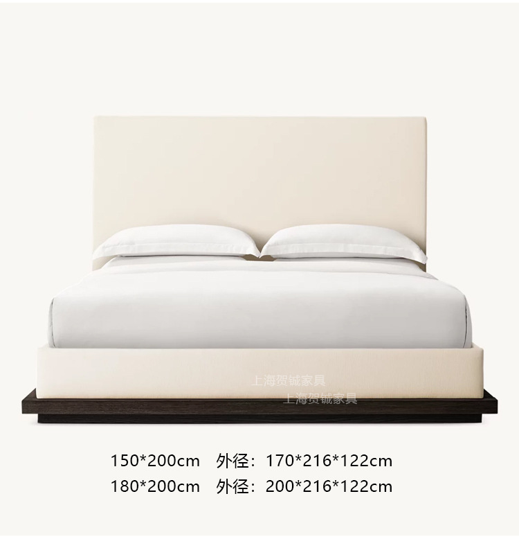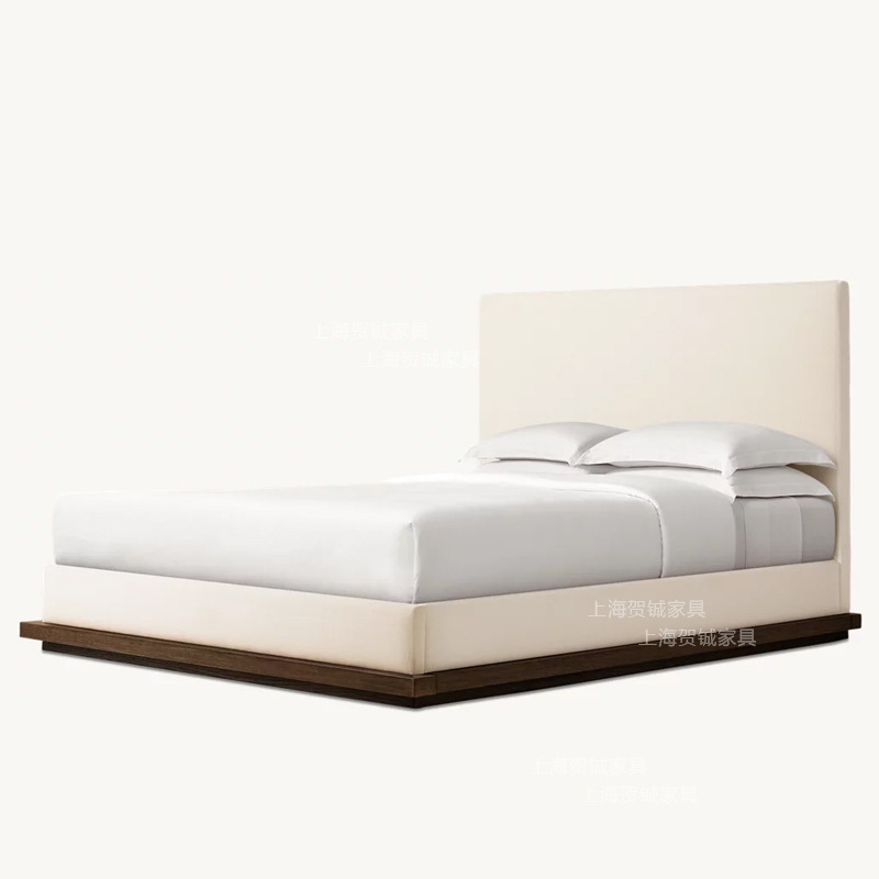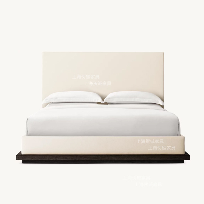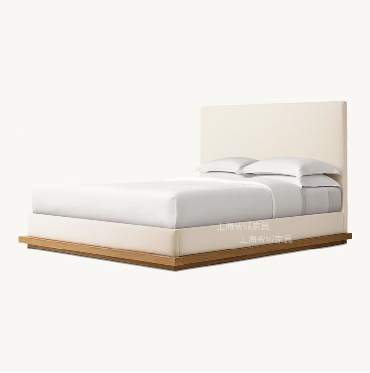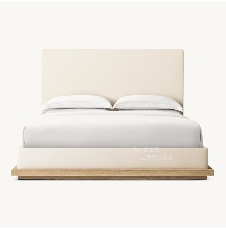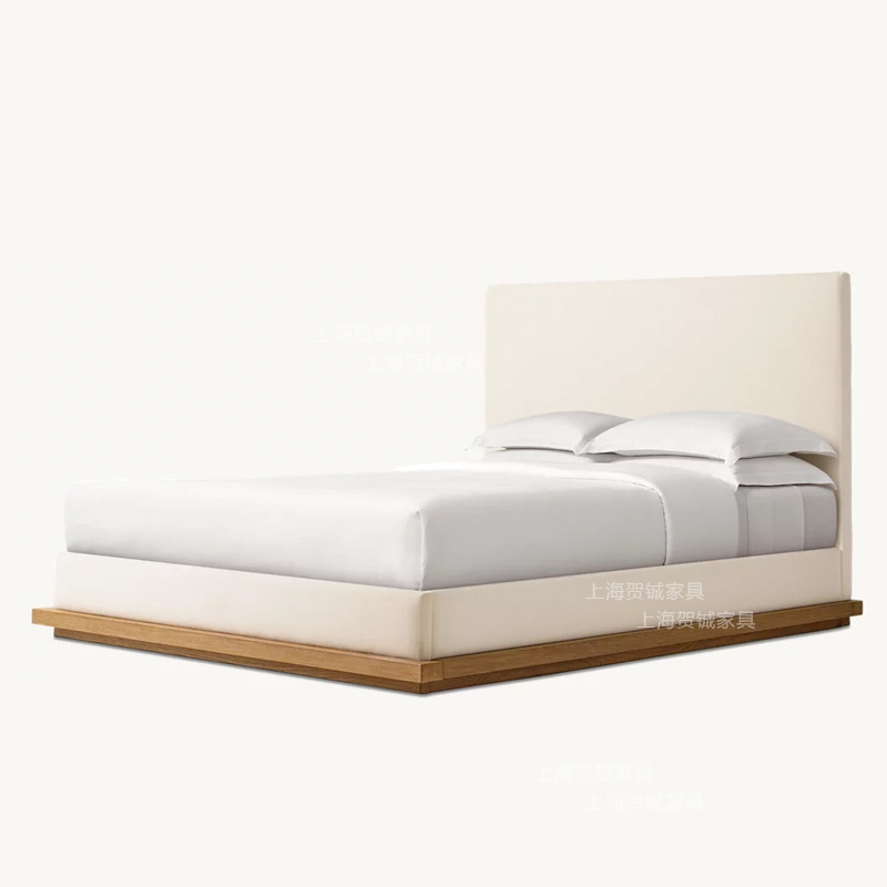 American RH 가구 심플 모던 원목 더블 침대 아메리칸 레트로 오크 소프트 등받이 침대 1.8m 플로어 침대