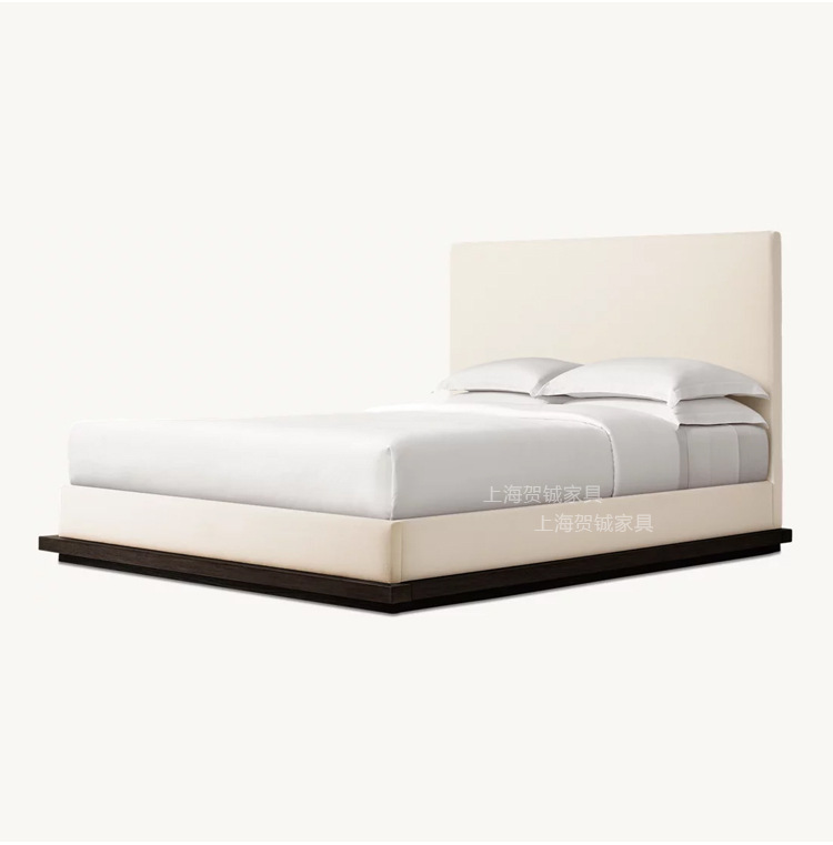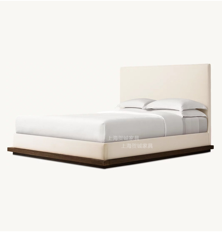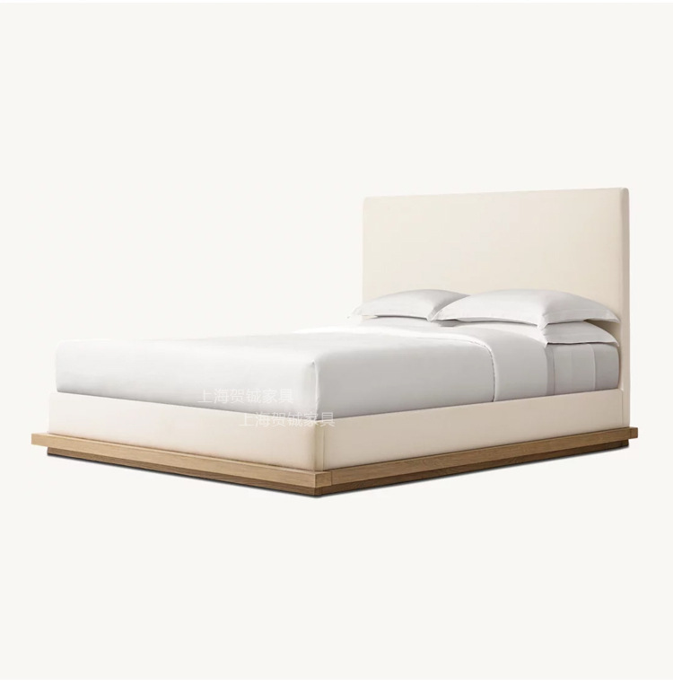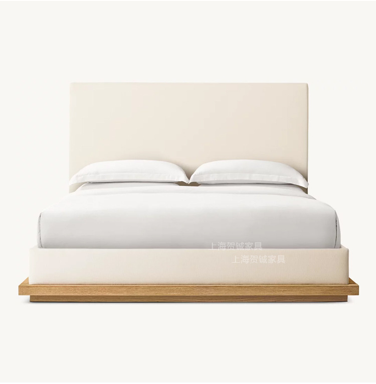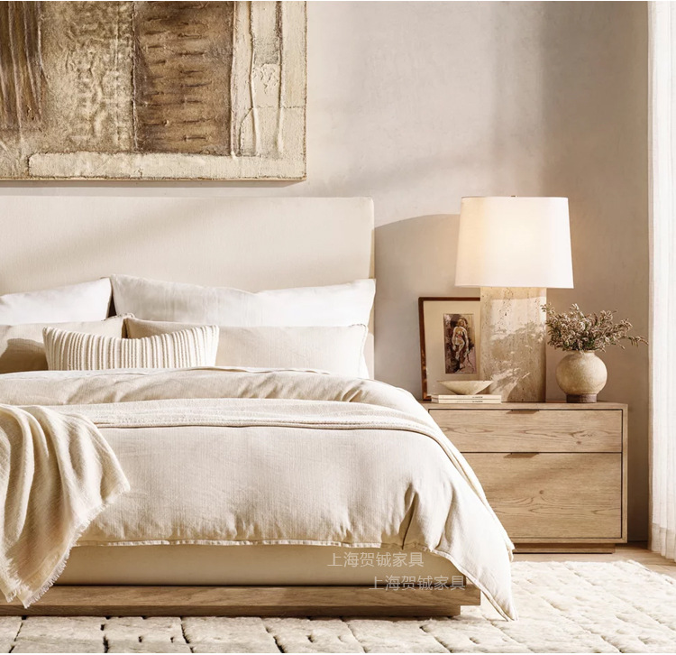 American RH 가구 심플 모던 원목 더블 침대 아메리칸 레트로 오크 소프트 등받이 침대 1.8m 플로어 침대스토어 가기