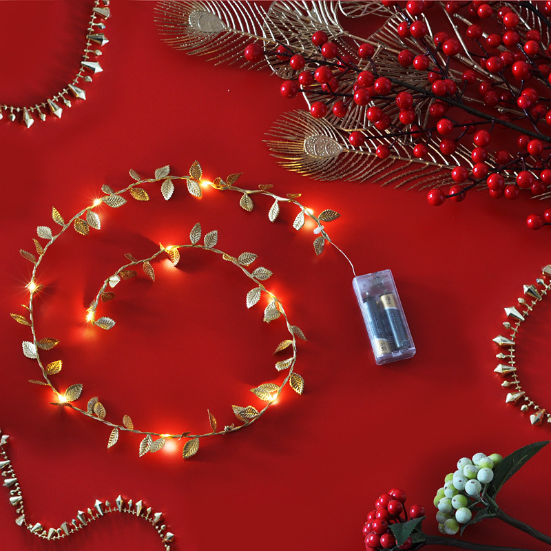 新款金树叶灯串 led彩灯金叶子缠绕铜线串灯节日庭院装饰灯