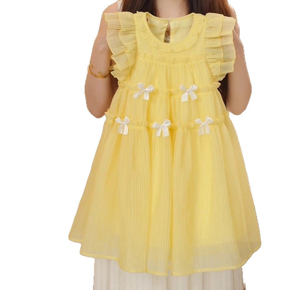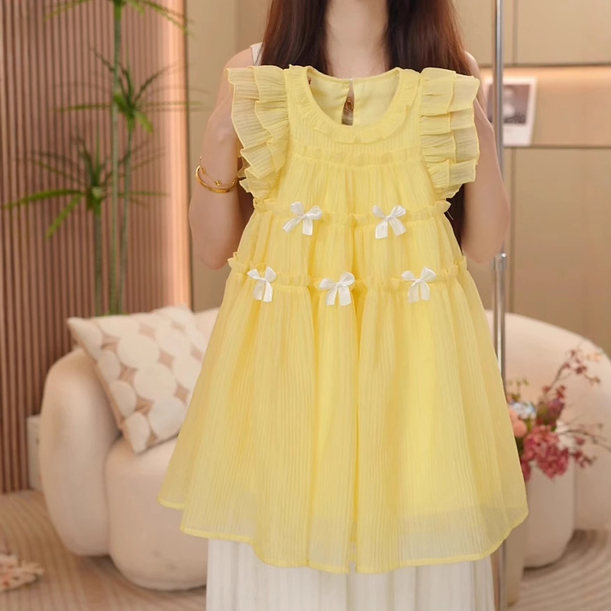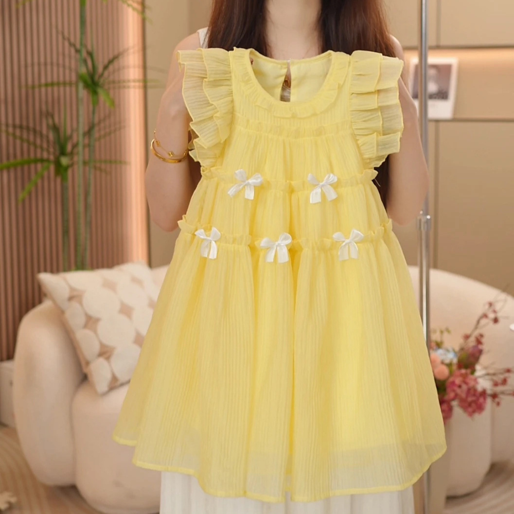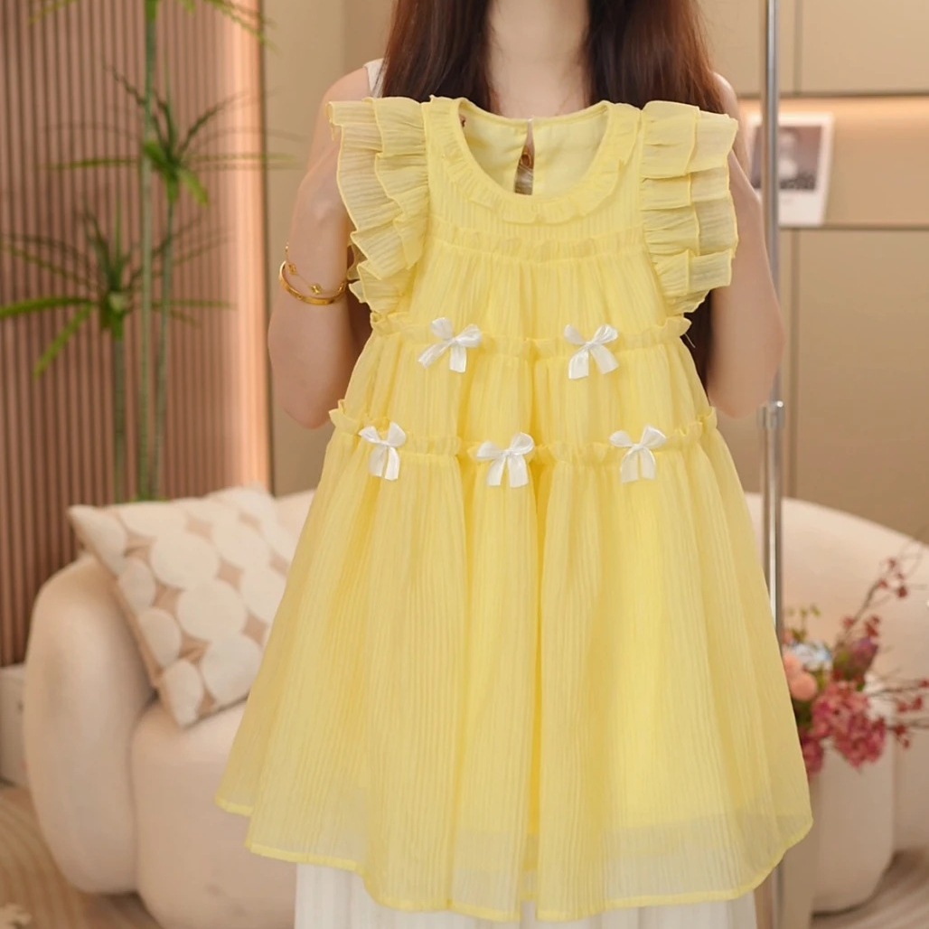 여자 2025 여름 새로운 달콤한 여자 드레스 어린이 패션 Bowknot 민소매 여자 드레스