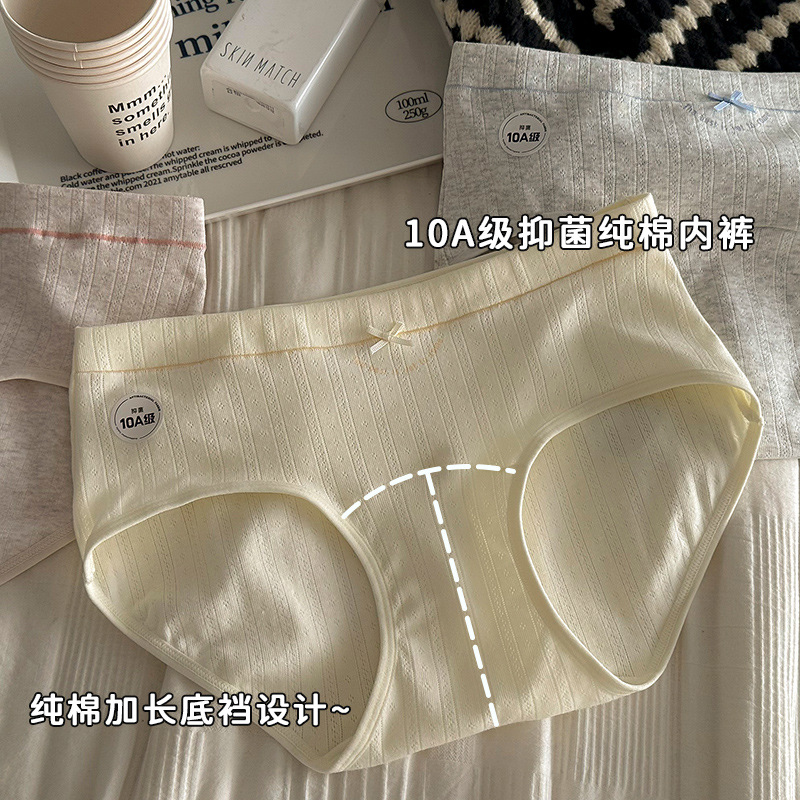 Jiazhi 순수 통기성과 편안한 10A 항균 순수 코튼 속옷, 여성용 고탄성 확장 중간 허리 팬티