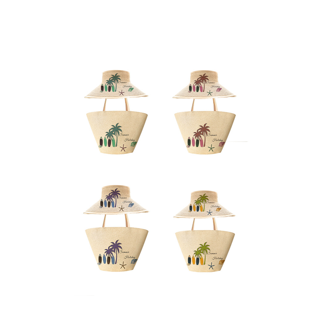 해변용 코코넛 나무 여성 숄더백 대용량 토트백 야외 자외선 차단 모자 가방 세트