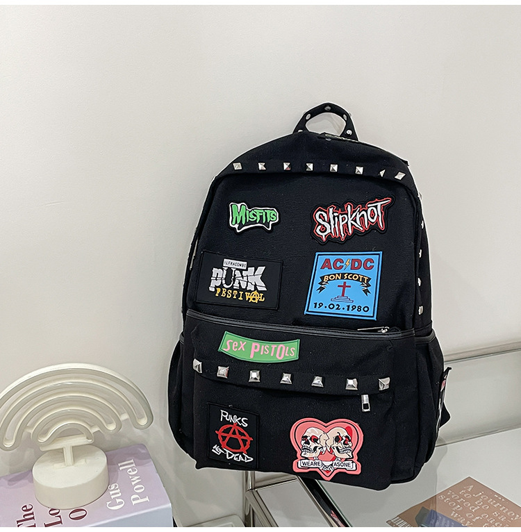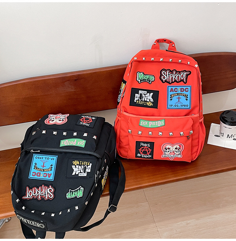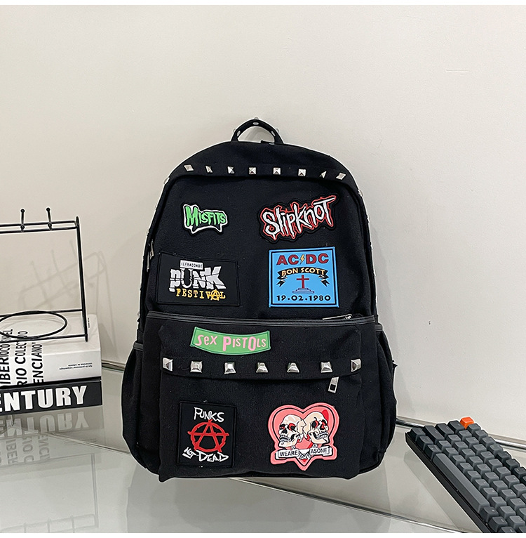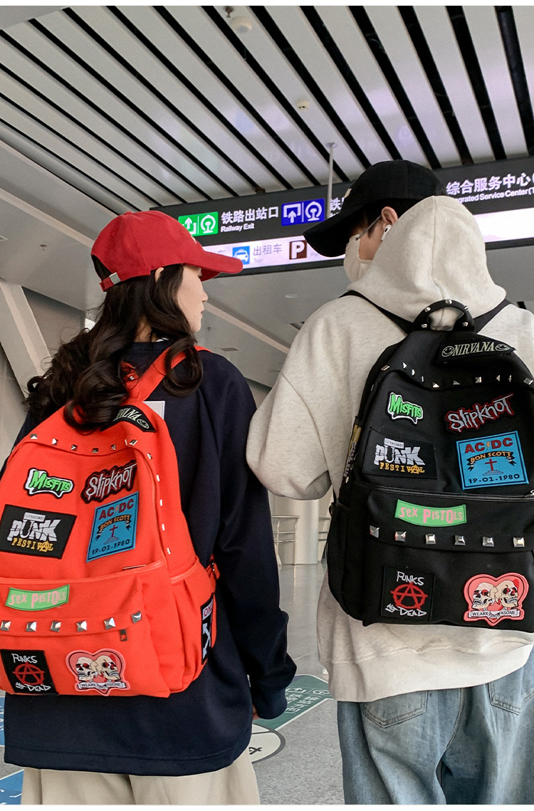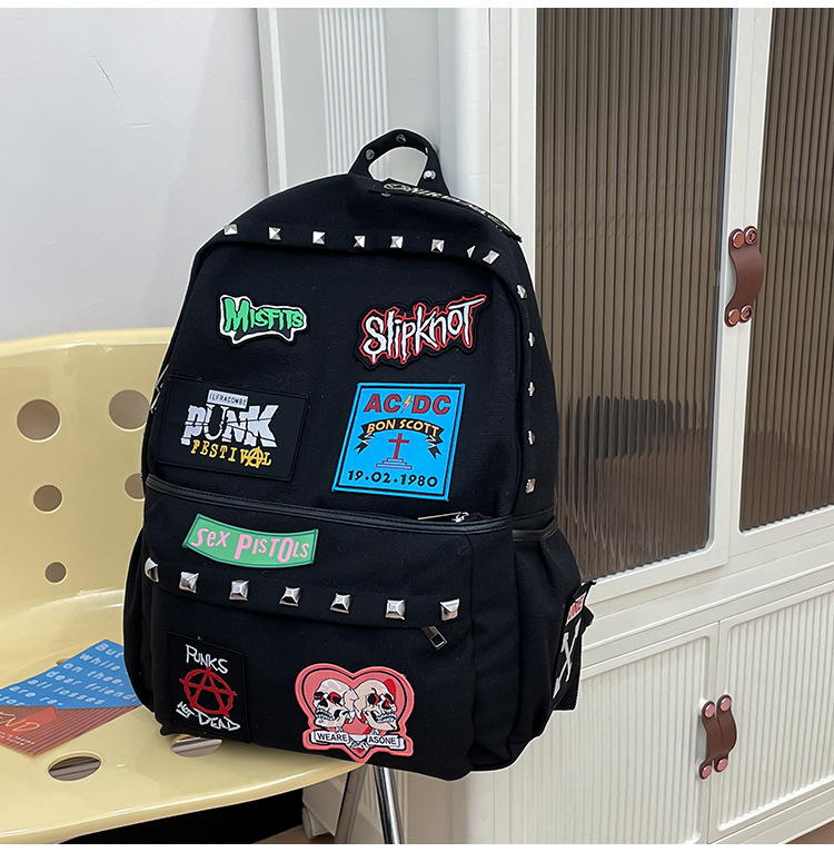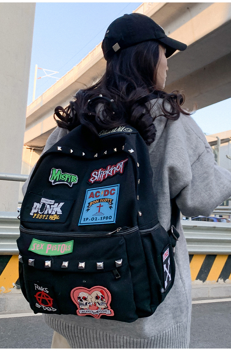 남성용 멋진 배낭, 펑크 스타일의 새로운 스타일, 자수 리벳, 대학생 대용량 학교 가방, 여성용 맞춤형 배낭