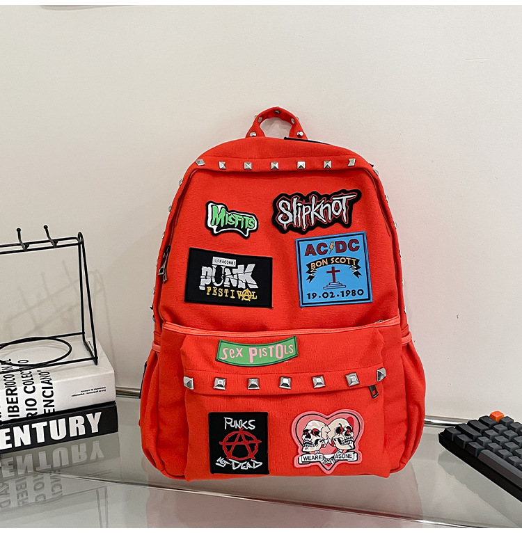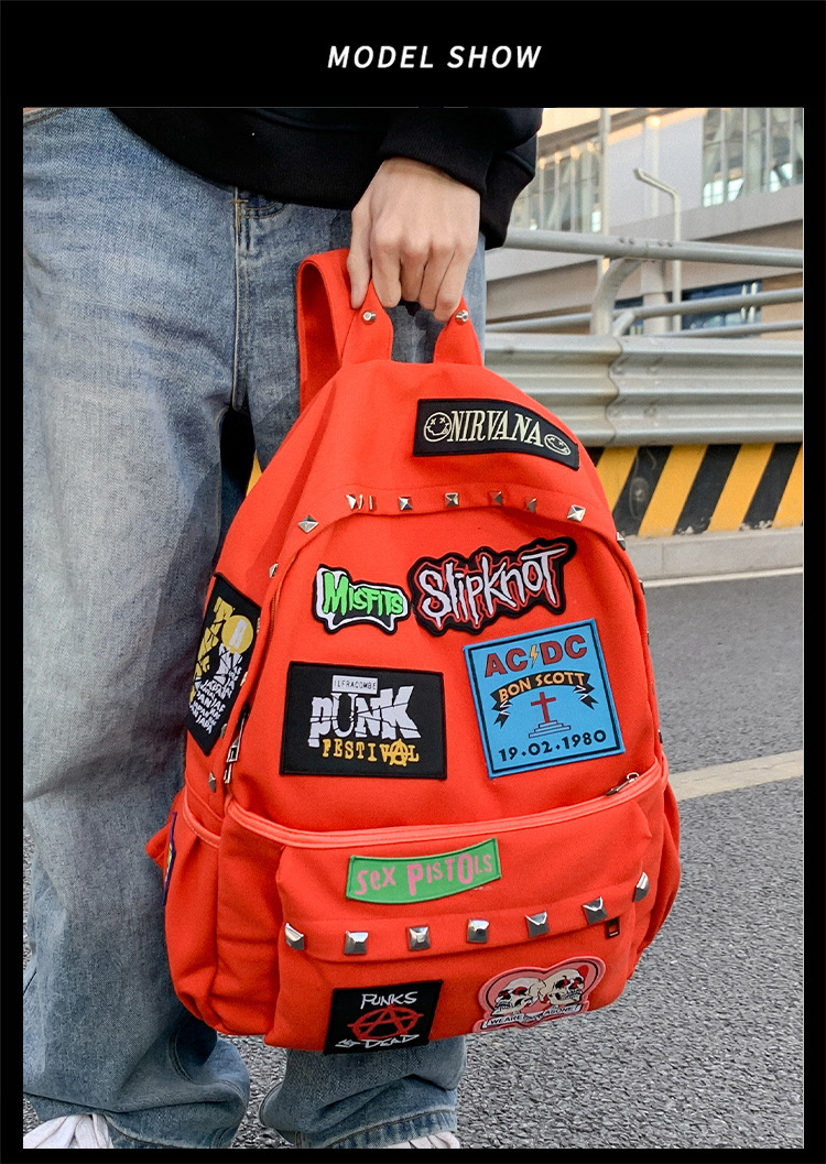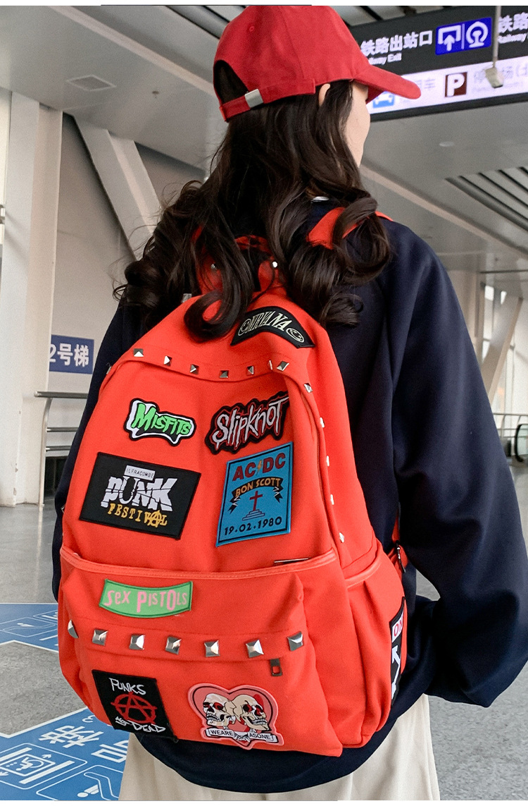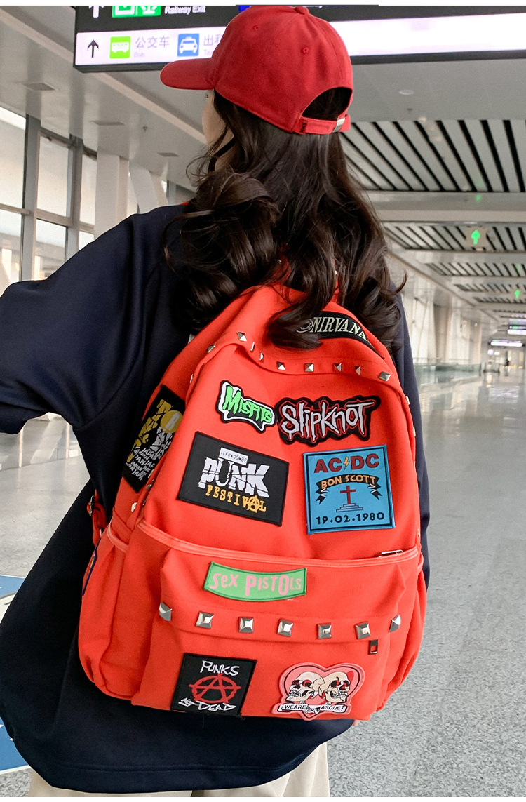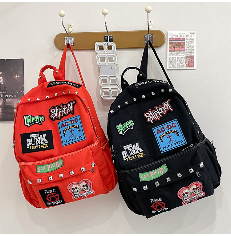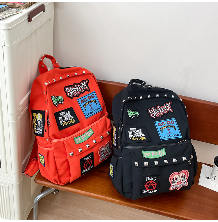 남성용 멋진 배낭, 펑크 스타일의 새로운 스타일, 자수 리벳, 대학생 대용량 학교 가방, 여성용 맞춤형 배낭