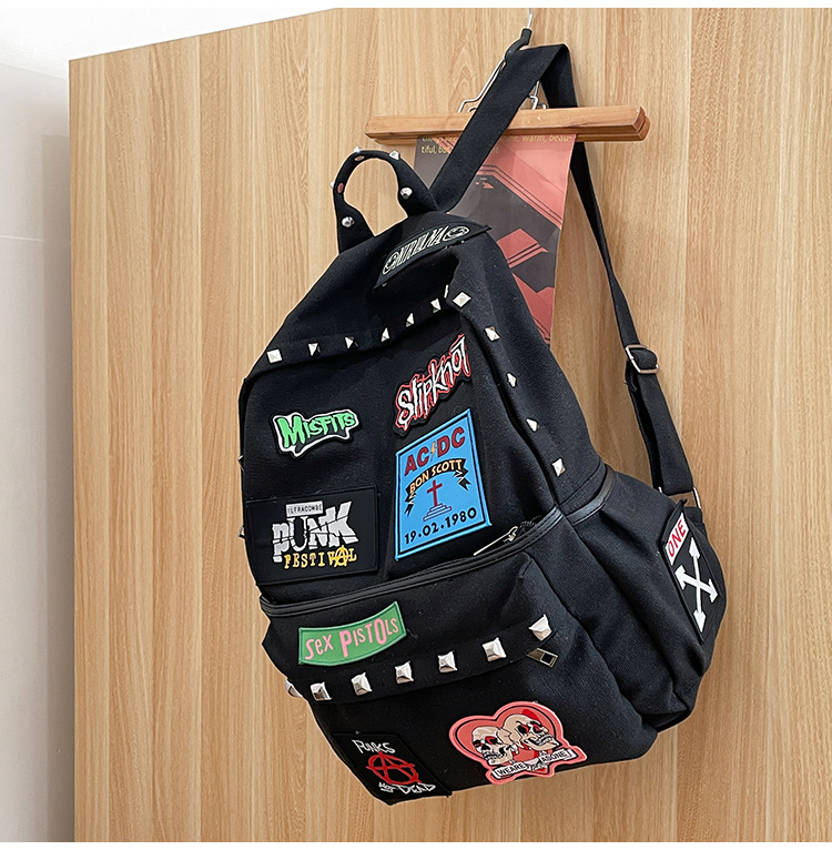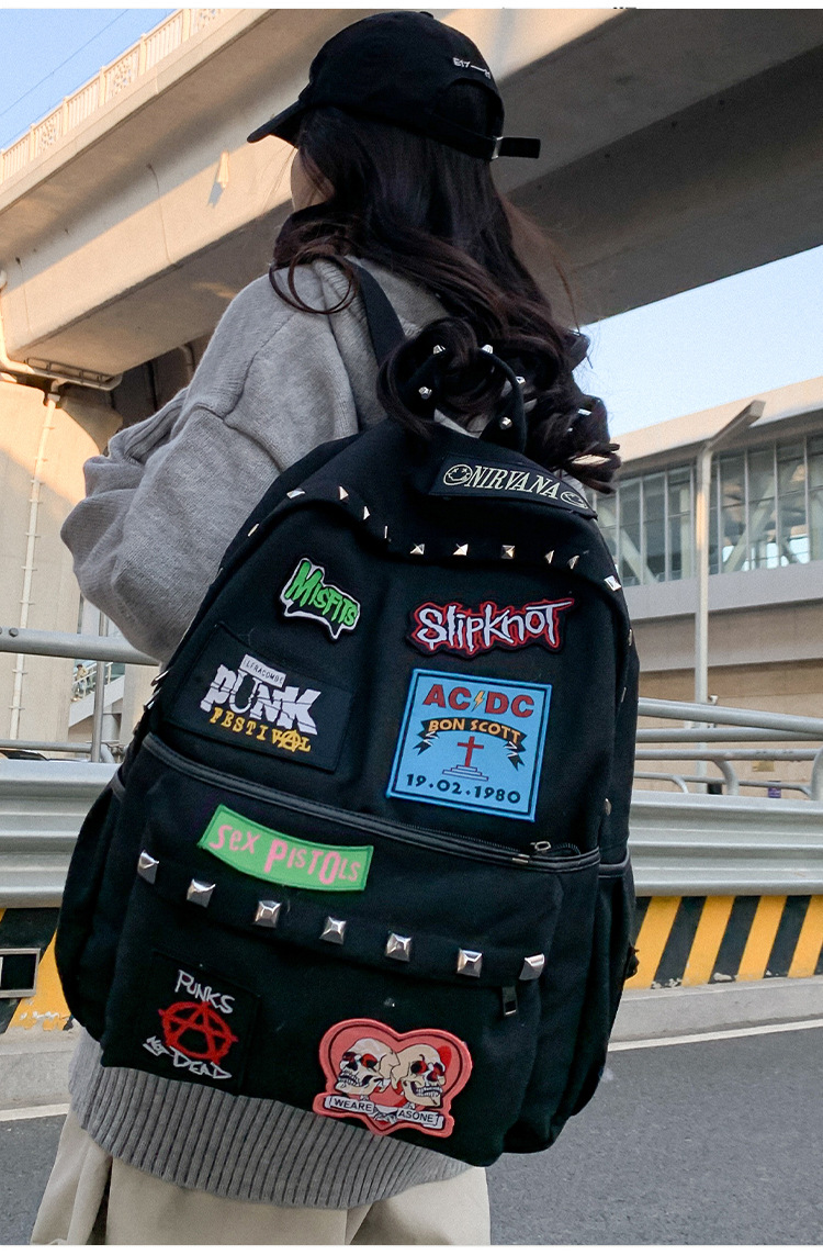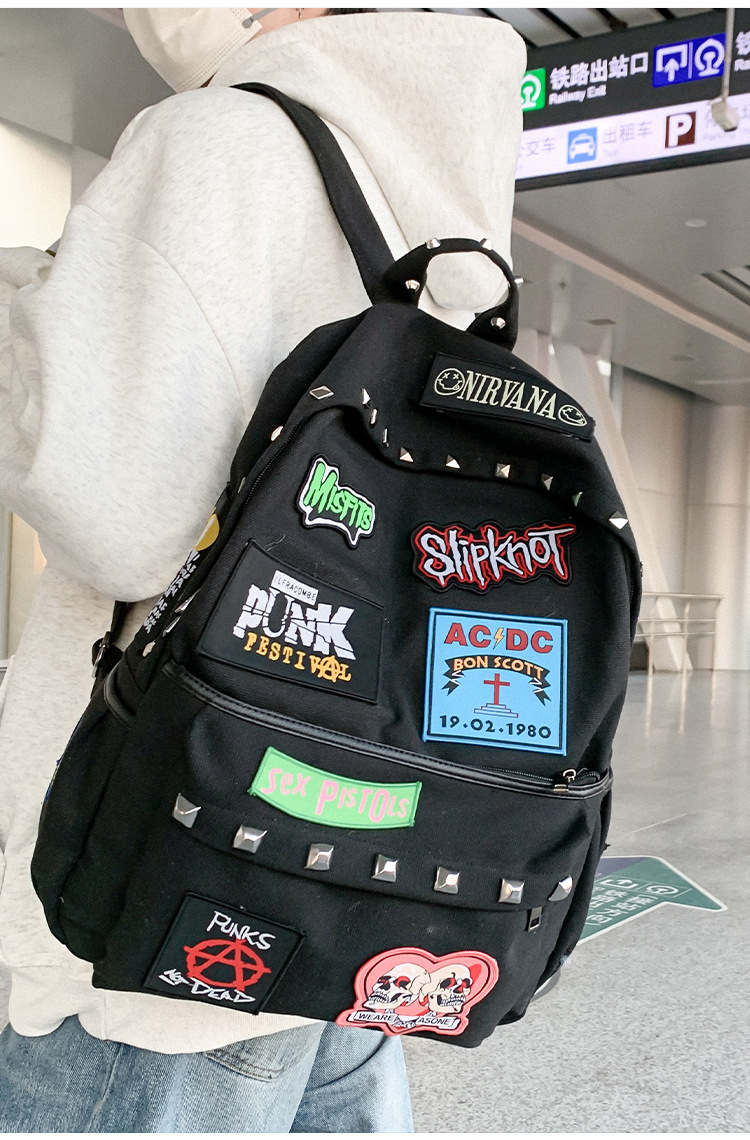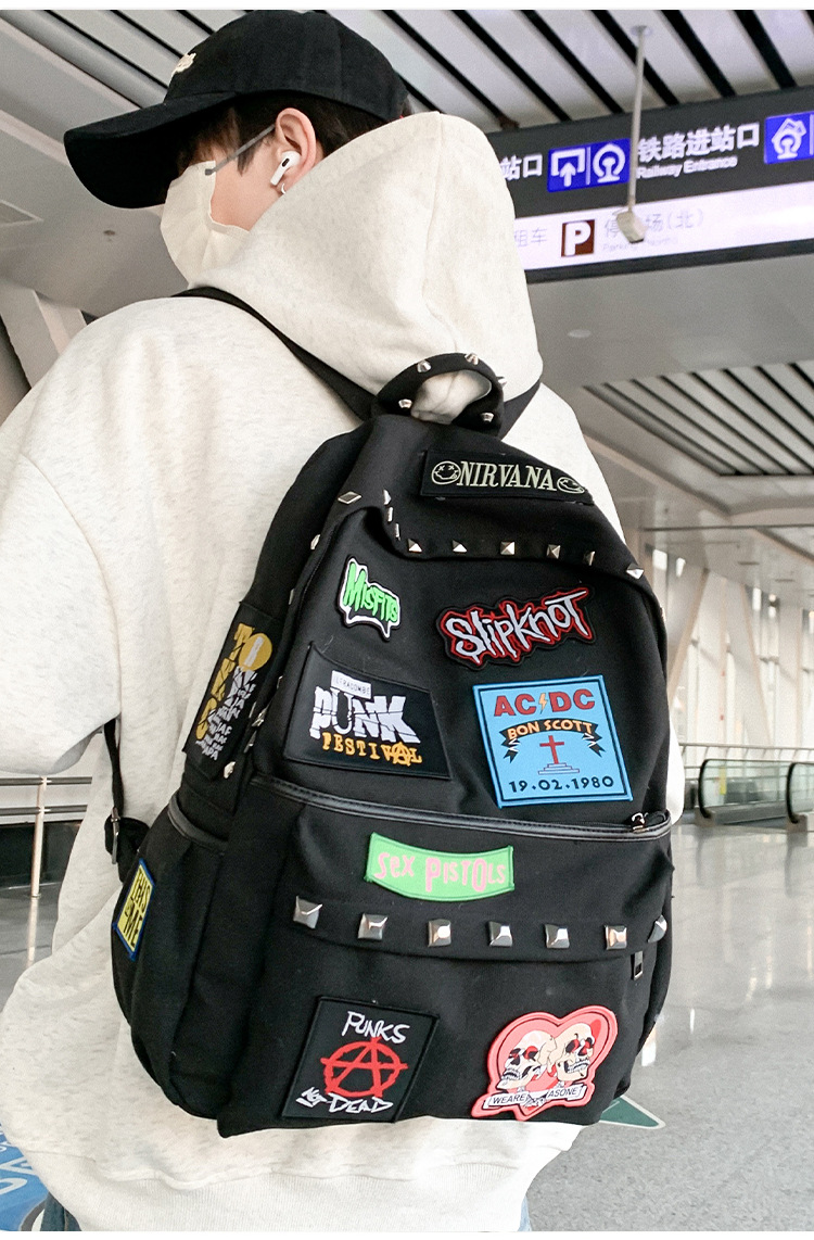남성용 멋진 배낭, 펑크 스타일의 새로운 스타일, 자수 리벳, 대학생 대용량 학교 가방, 여성용 맞춤형 배낭스토어 가기