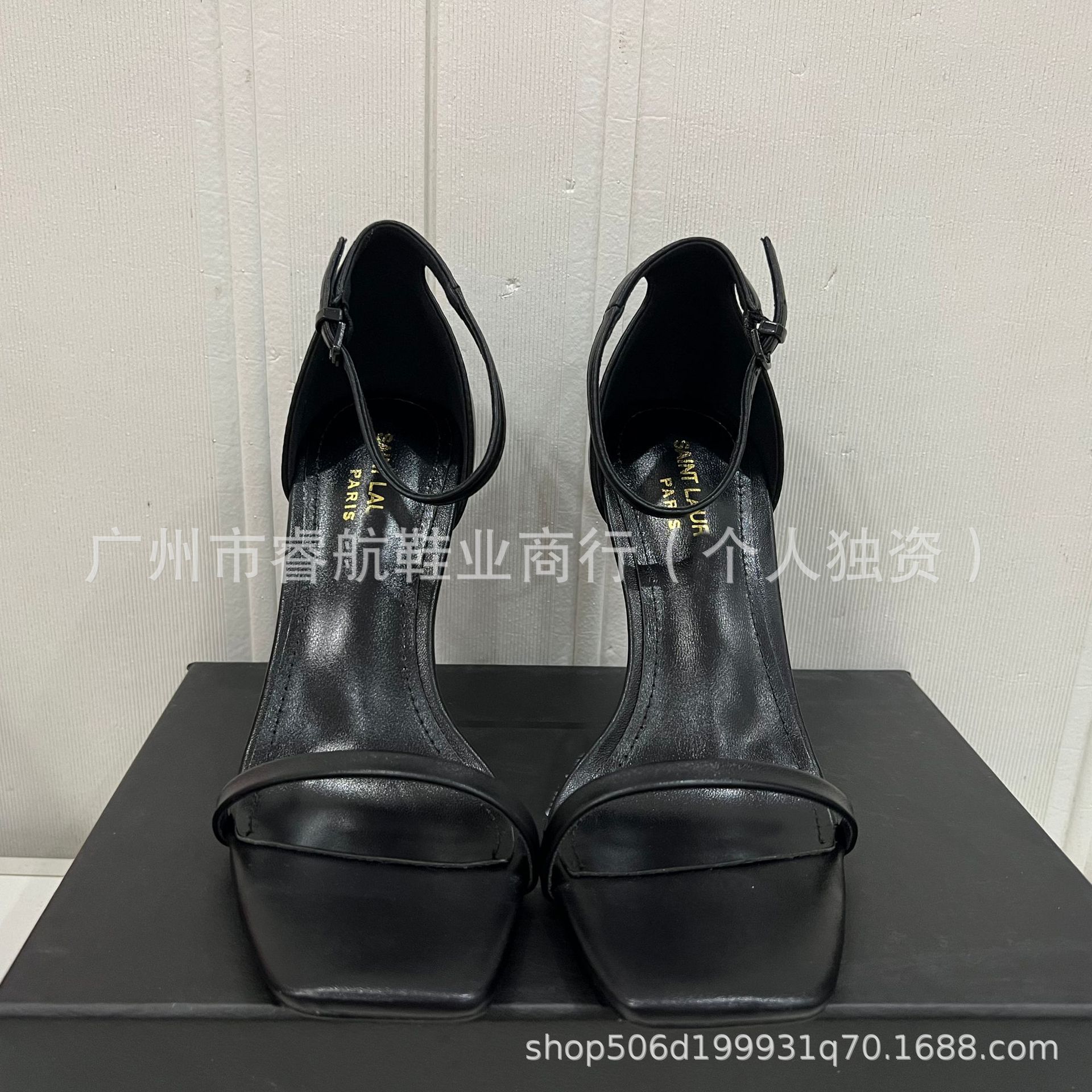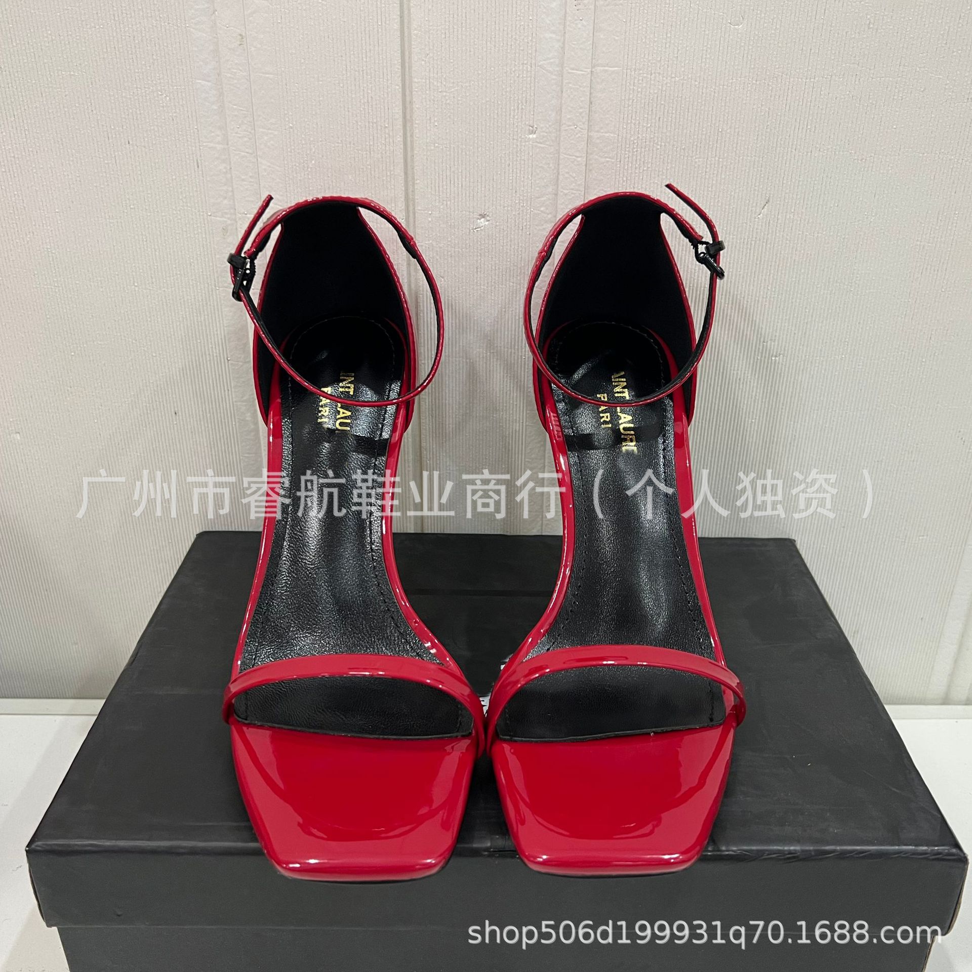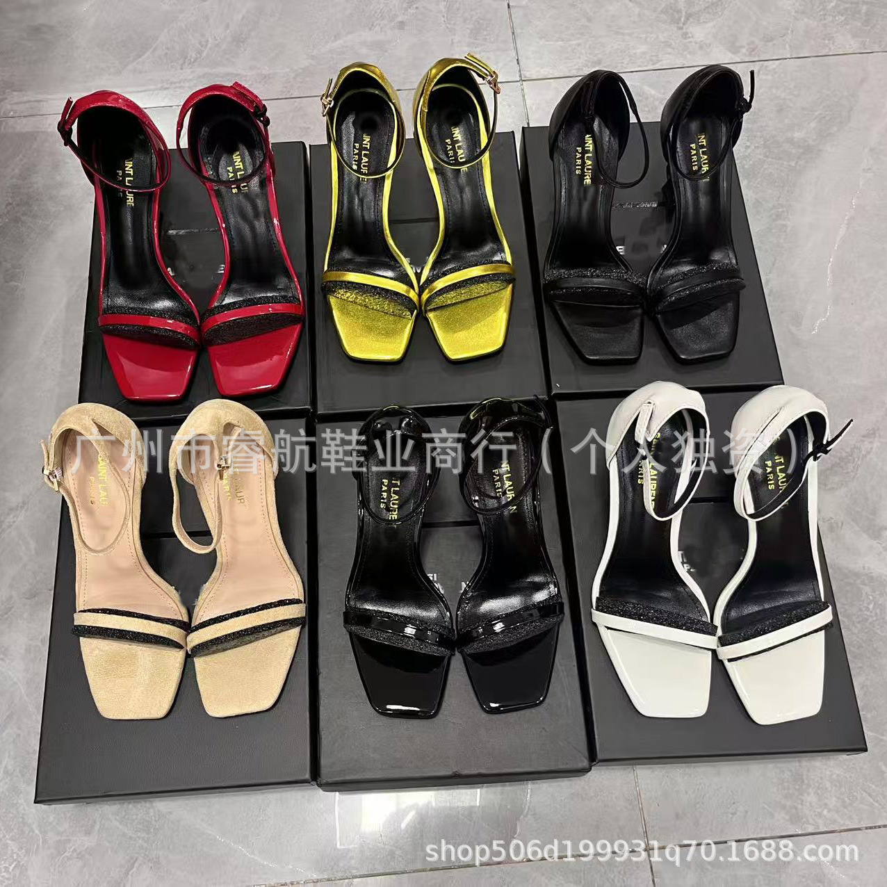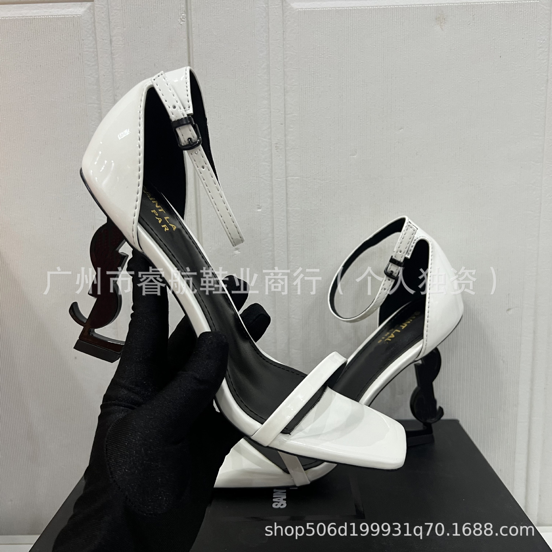 여성용 원스트랩 하이힐 2025 새로운 유럽과 미국의 레터 힐 블랙 페이턴트 가죽 섹시 샌들 같은 스타일의 슈퍼 하이힐스토어 가기