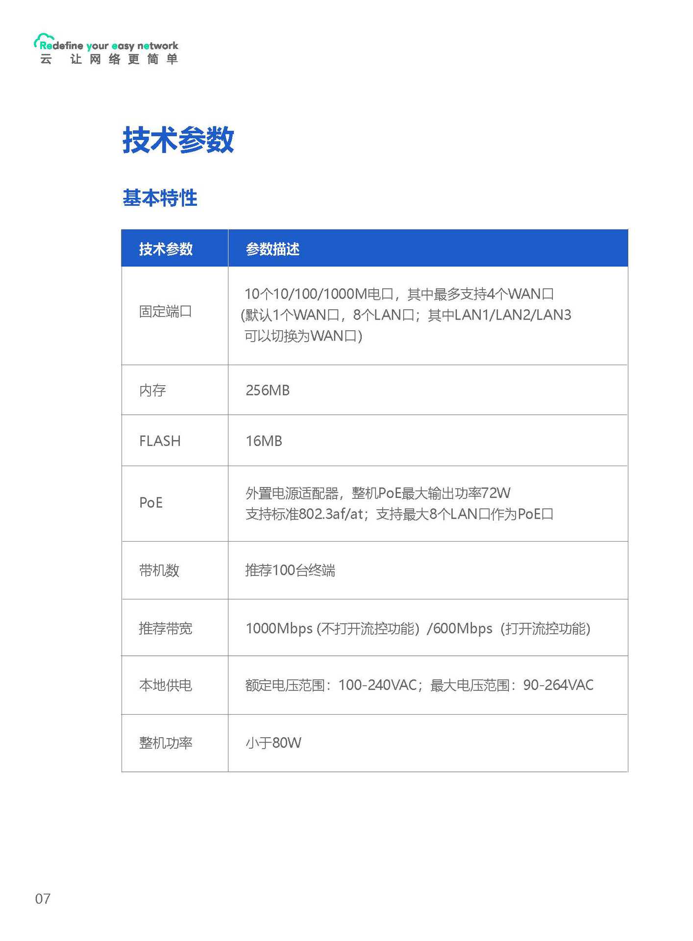10口全千兆PoE路由器。台,最大支持1000Mbps带宽。整机带10个千兆以太网口,其中固化1个WAN口,3个LAN/WAN可切换口,6个固化LAN口,最大支持4个WAN口。整机最大PoE输出72W,单端口最大输出30W。集成统一网络控制器功能,最大可管理32台支持智能组网特性的EAP、RAP或网管交换机,以及128台以内的ES2xx系列智能交换机。支持应用识别、流量控制、VPN、PPPOE、认证、行为管理等丰富功能
