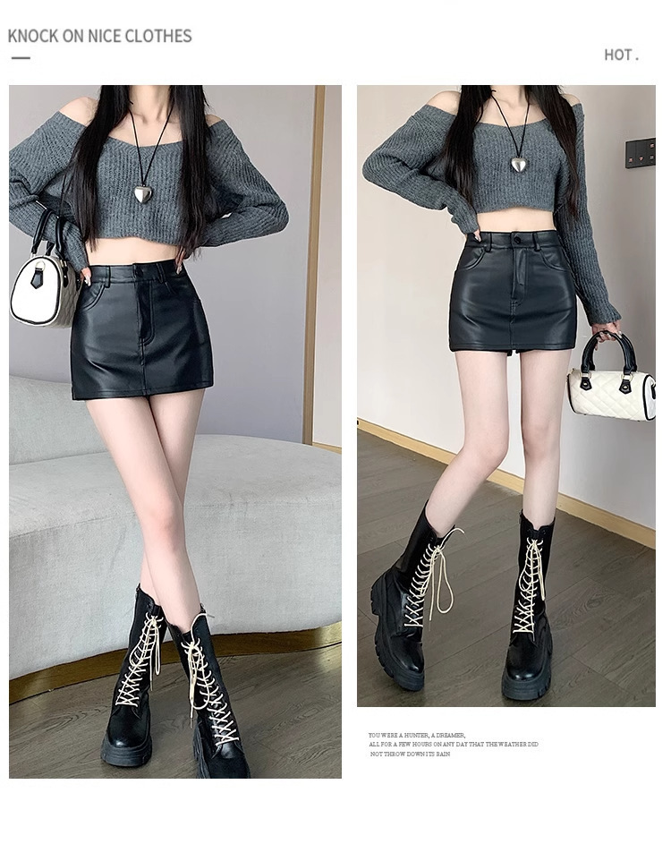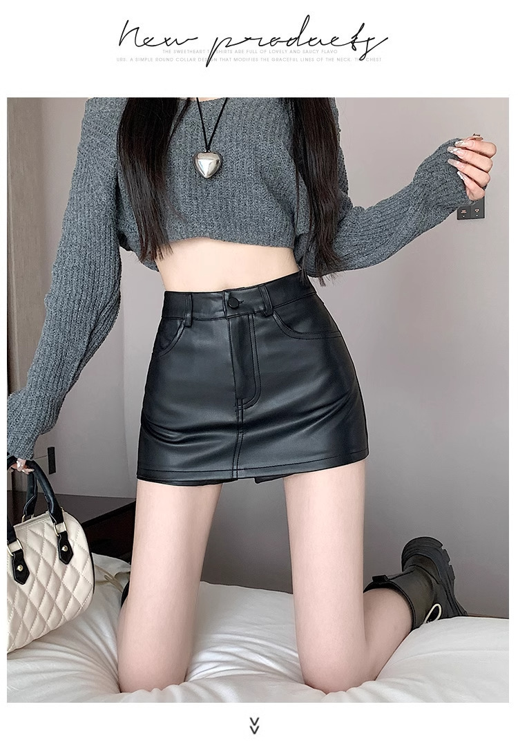 블랙 pu 스커트 핫 소녀 미니 스커트 2024 봄 새로운 하이 웨이스트 질감 a 라인 힙 스커트 여성용 가죽 스커트스토어 가기