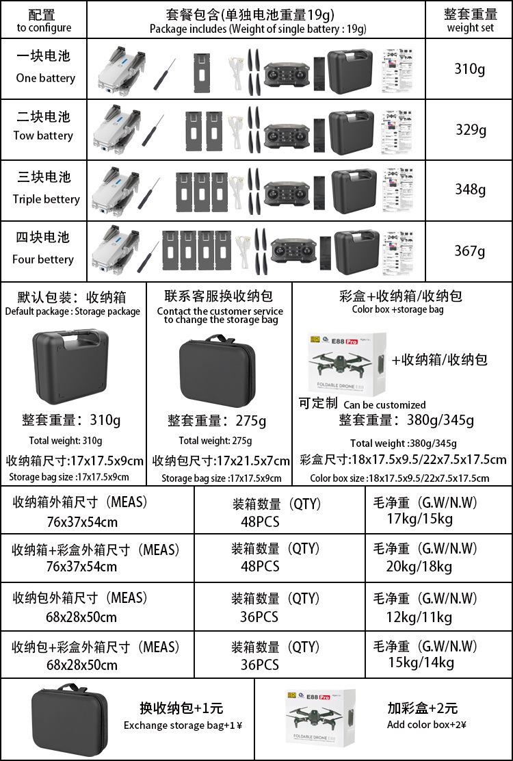 E88 UAV 국경 간 인기 HD 4K 항공 사진 항공기 4축 모델 항공기 E99 고정 높이 원격 제어 항공기