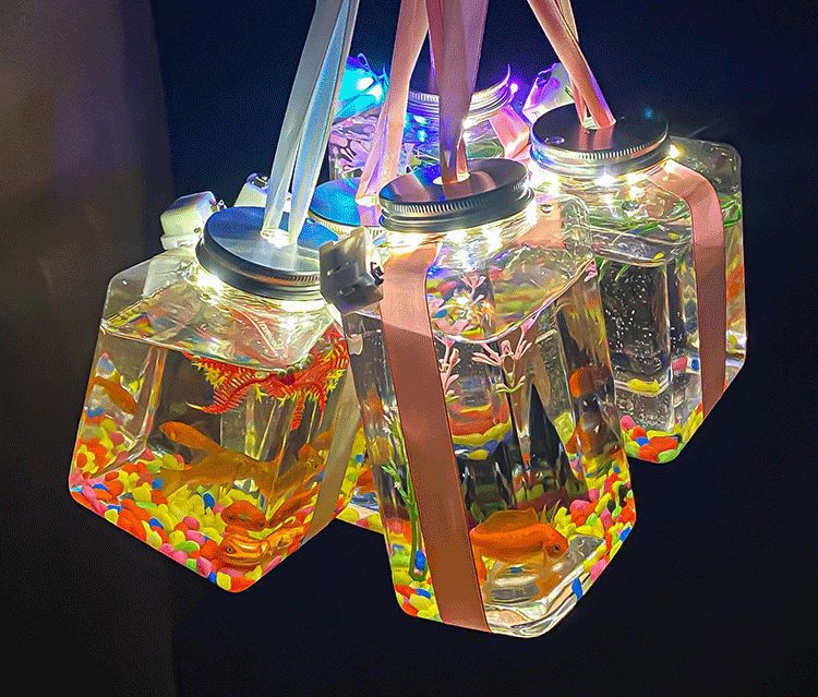 싱지 인터넷 연예인 통조림 물고기 가판대 빛나는 크리스탈 도매 버블 물고기 병 수생 식물 다채로운 돌 램프 재료 패키지 야시장
