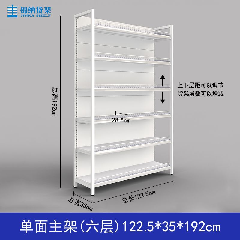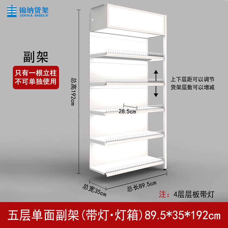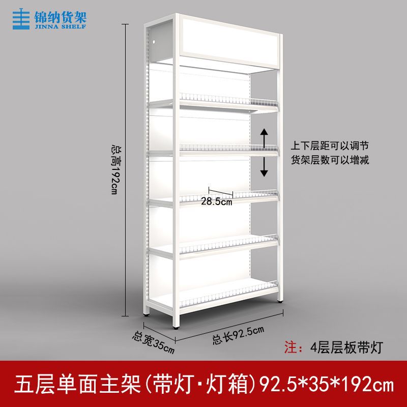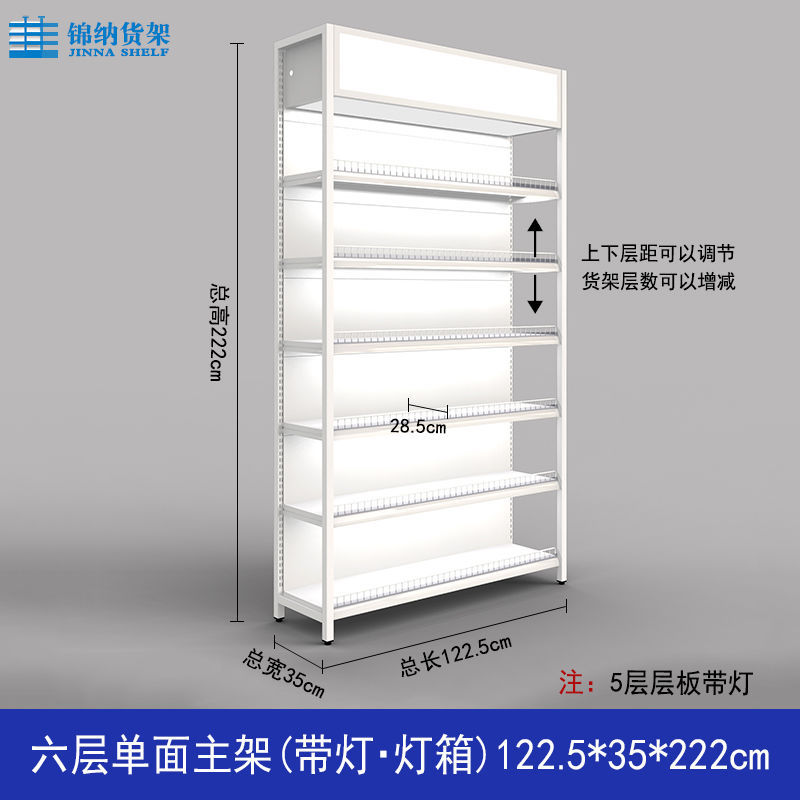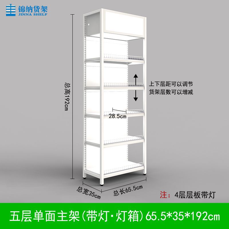 가드 레일이있는 흰색 슈퍼마켓 선반 디스플레이 랙 다층 조절 가능한 강철 프레임 조명이있는 단일 측면 양면 엄마와 아기 문구점스토어 가기