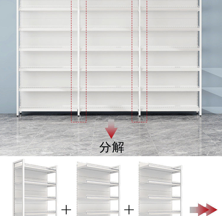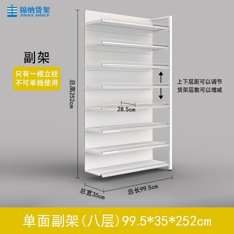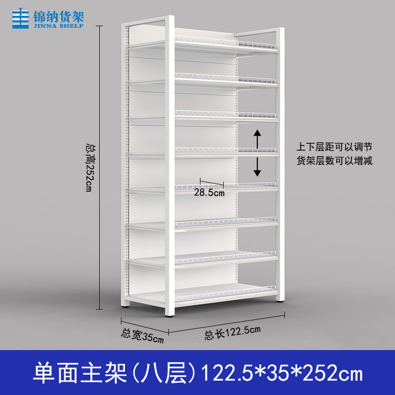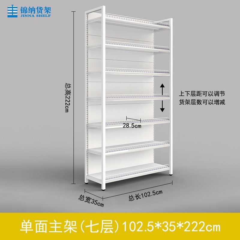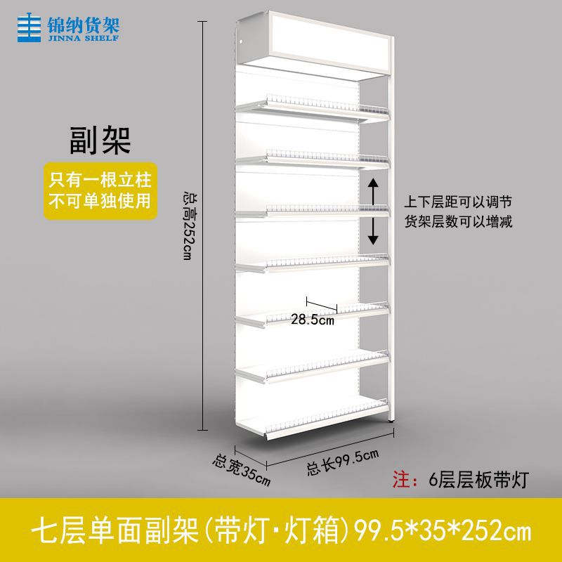 가드 레일이있는 흰색 슈퍼마켓 선반 디스플레이 랙 다층 조절 가능한 강철 프레임 조명이있는 단일 측면 양면 엄마와 아기 문구점스토어 가기