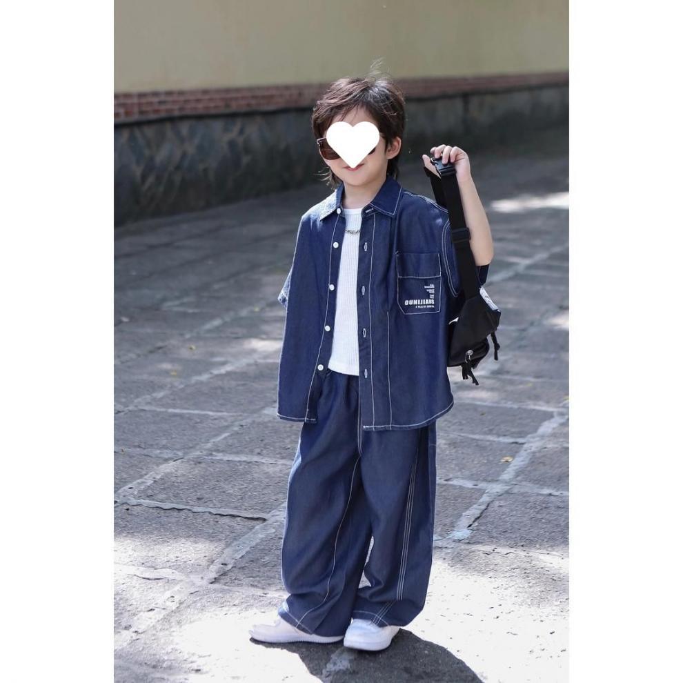 소년 여름 데님 정장 2025 새로운 중대형 어린이 여름 얇은 캐주얼 셔츠와 바지 어린이 투피스 세트