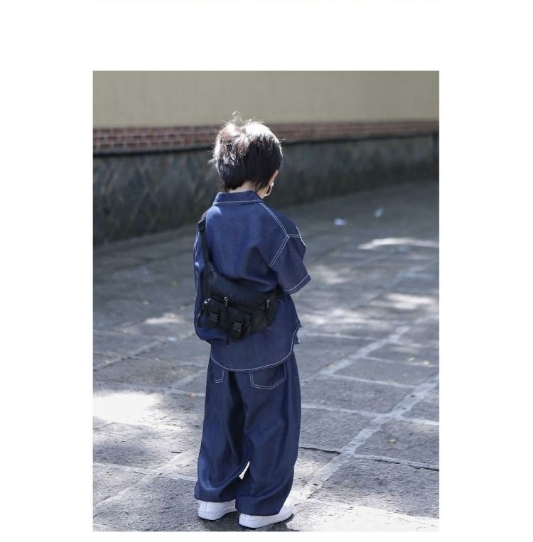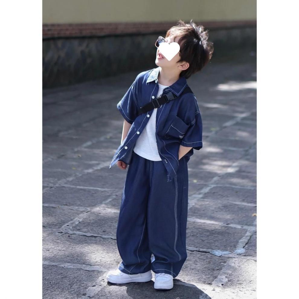 소년 여름 데님 정장 2025 새로운 중대형 어린이 여름 얇은 캐주얼 셔츠와 바지 어린이 투피스 세트스토어 가기