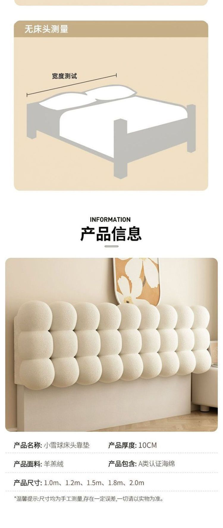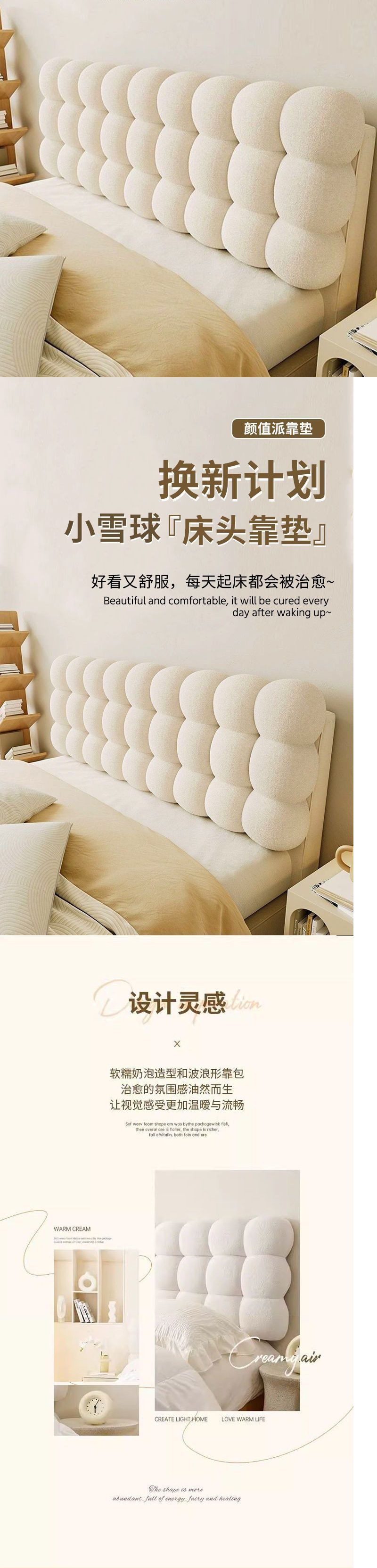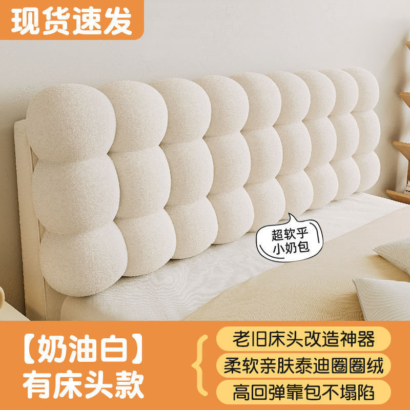 침대 옆 등받이 새로운 크림 스타일 소프트 백 두꺼운 침대 옆 소프트 쿠션 간단한 등받이 노워시 침대 옆 등받이 단일 구매스토어 가기
