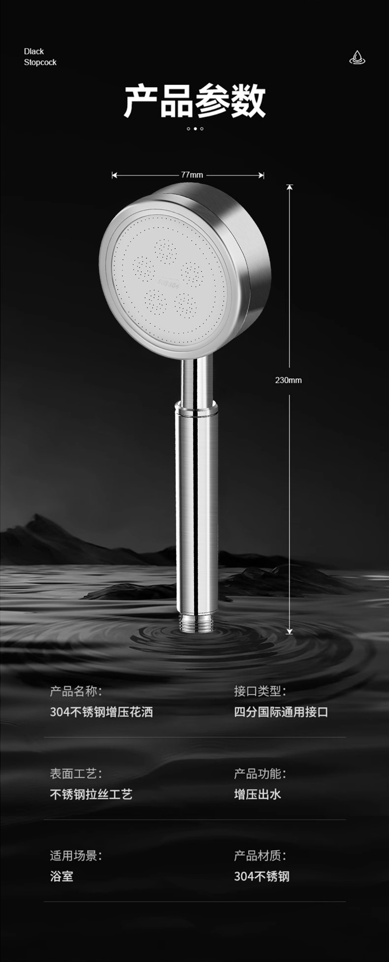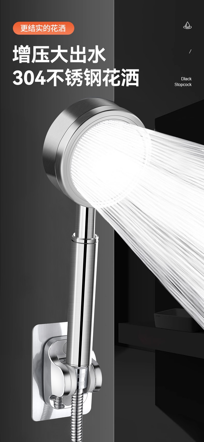 304 스테인레스 스틸 가압 샤워 헤드 가압 샤워 헤드 싱글 헤드 세트 가압 샤워 헤드스토어 가기