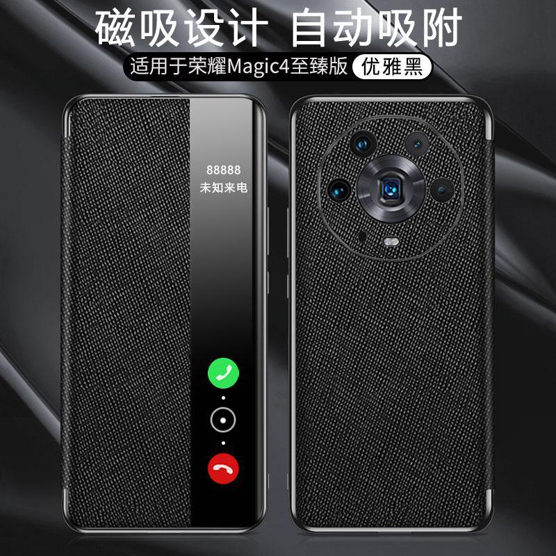 Honor Magic4 휴대폰 케이스에 적합 4pro 크로스 패턴 전기 도금 스마트 마그네틱 플립 가죽 케이스 4 Ultimate Edition Light스토어 가기