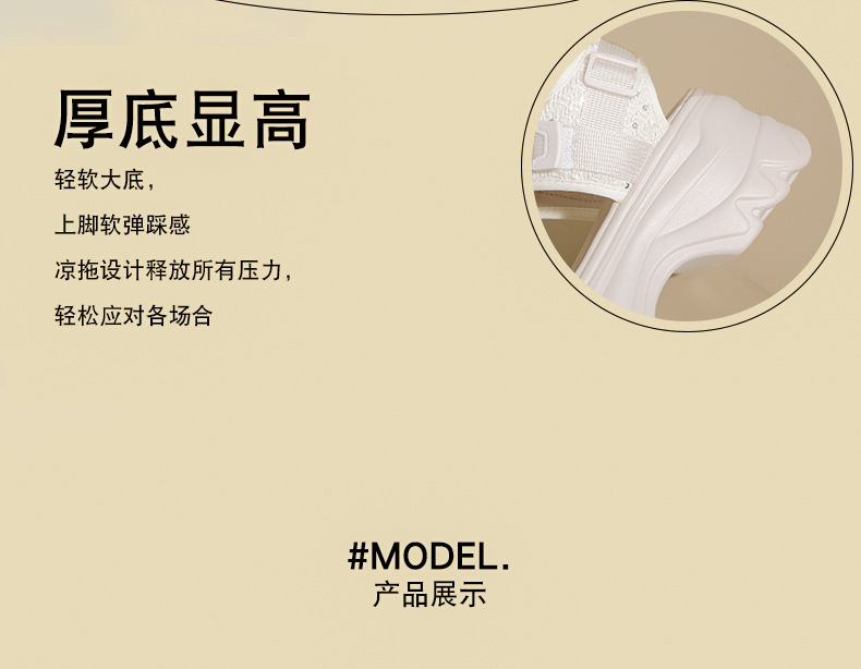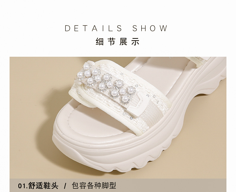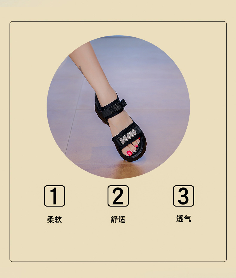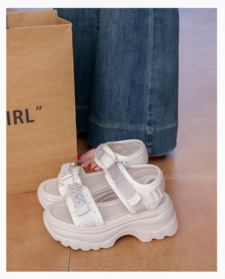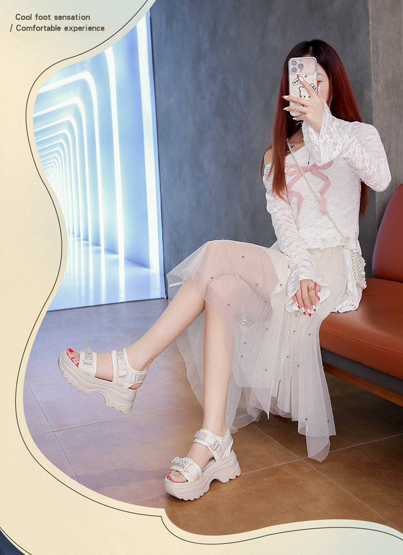 작은 크기의 라인스톤 두꺼운 밑창 샌들 여름 2025 새로운 겉옷 하이힐 부드러운 밑창 높이 증가 벨크로 로마 샌들 여성용스토어 가기