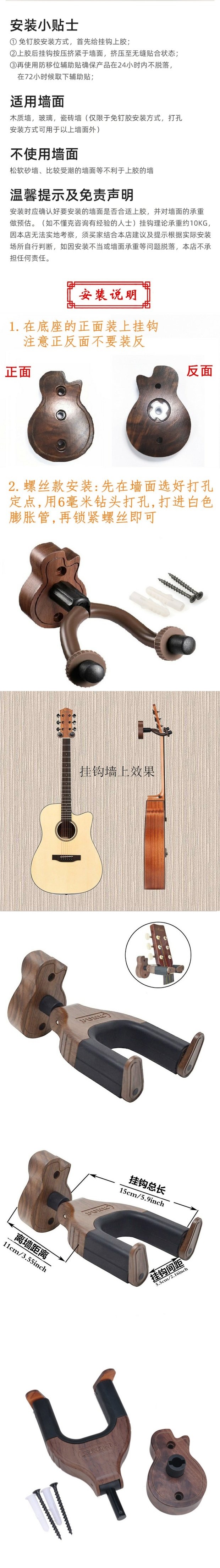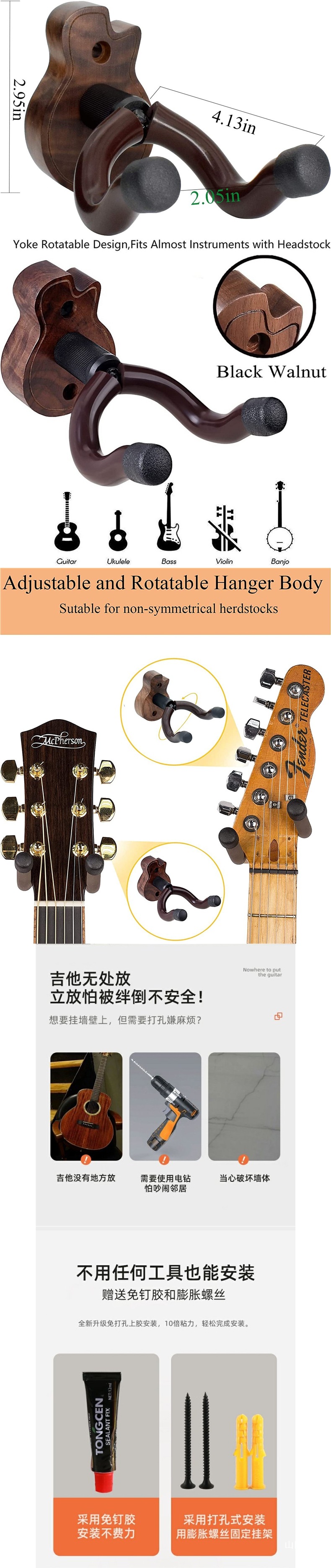 못이 없는 기타 모양의 포크 기타 수직 후크 베이스 우쿨렐레 바이올린 파이파 벽 스케이트보드 걸이스토어 가기