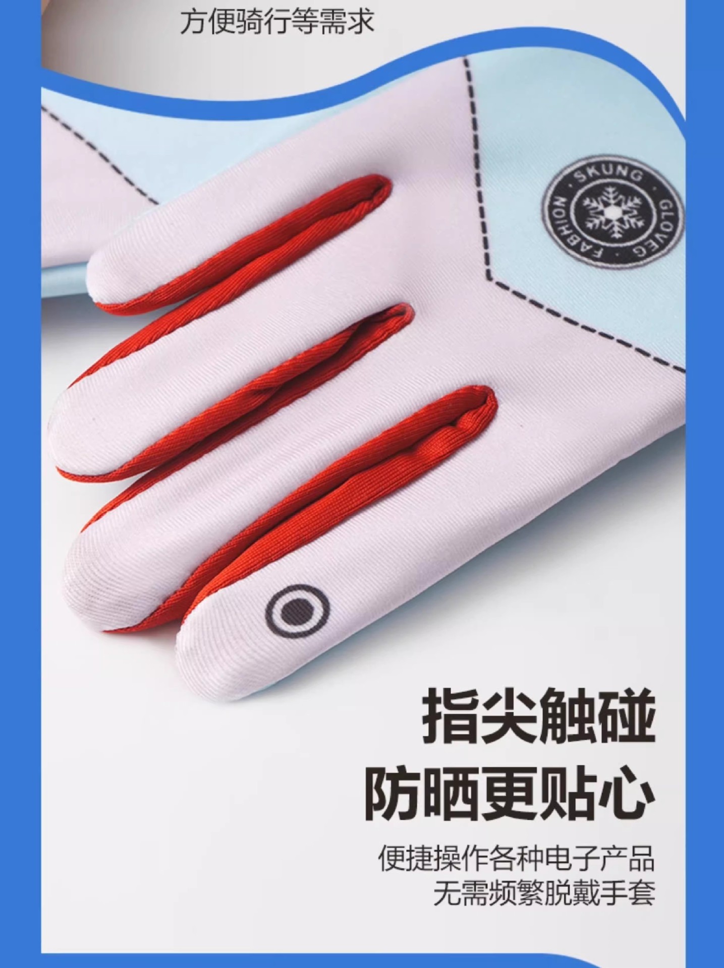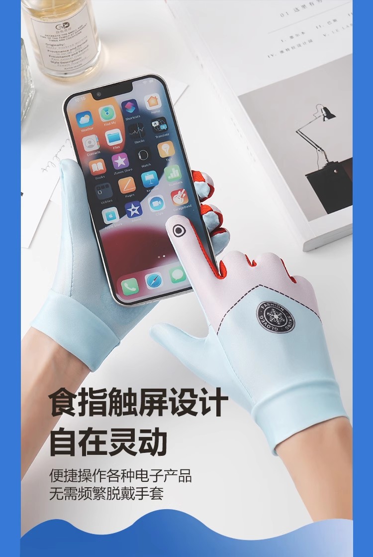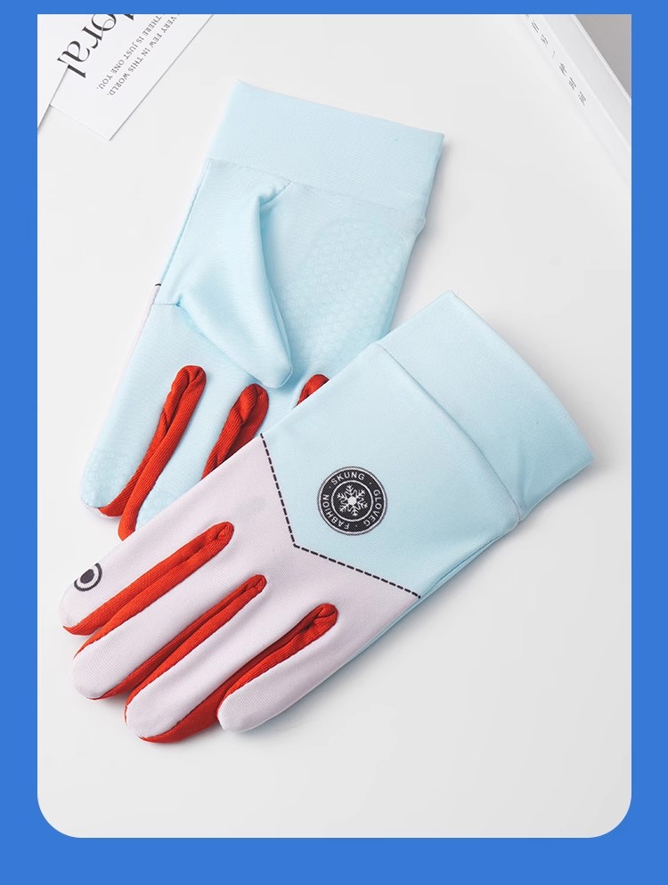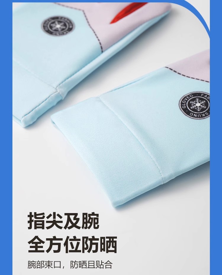 • 어린이용 아이스 실크 자외선 차단 장갑 - 라운드 라벨 블루
