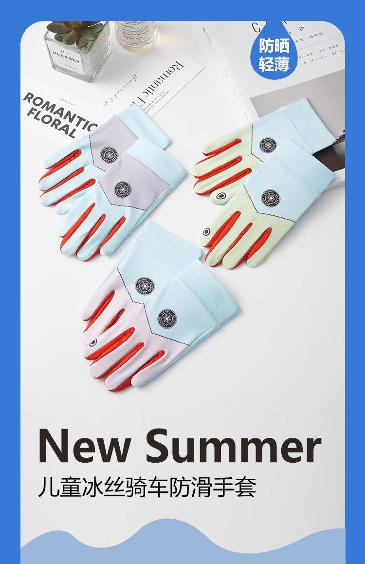 야외 등산, 자외선 차단, 얼음 실크, 얇고 통기성이 뛰어난 롤러 스케이트, 단일 막대, 미끄럼 방지 사이클링 장갑을 갖춘 소년 소녀용 어린이 장갑