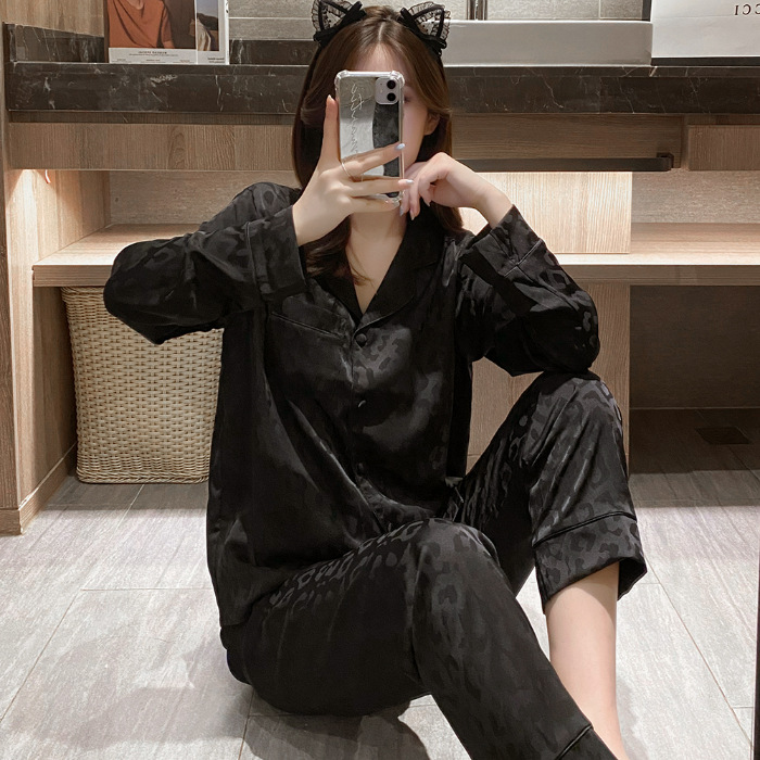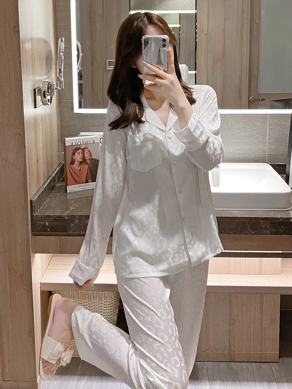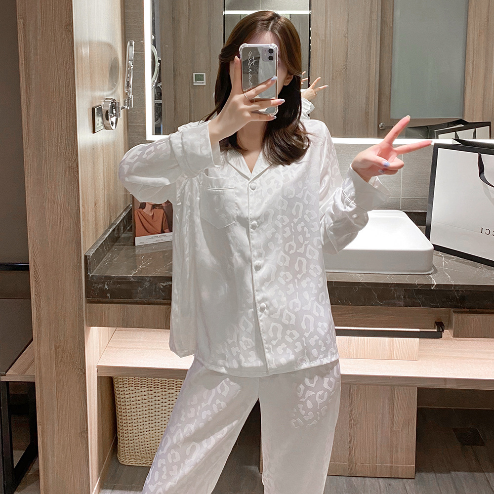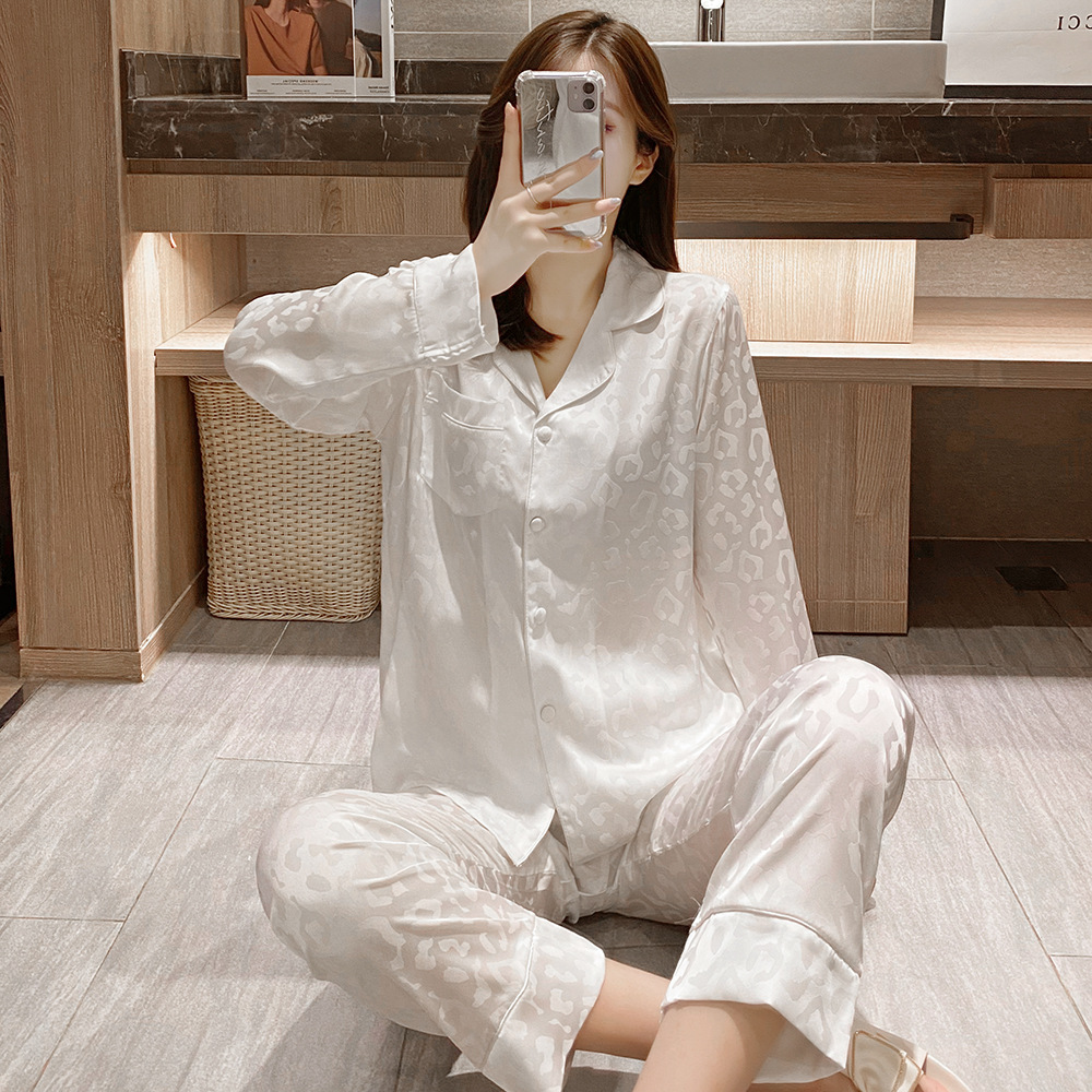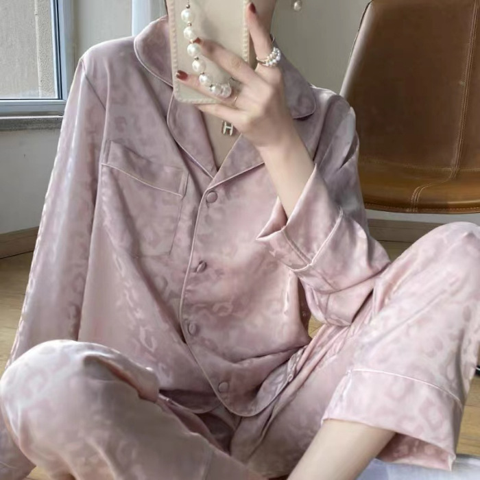 여성을 위한 고급 긴팔 잠옷, 봄과 가을 새로운 스타일의 아이스 실크 바지, 여름 실크 가정복 세트, 야외에서 착용 가능