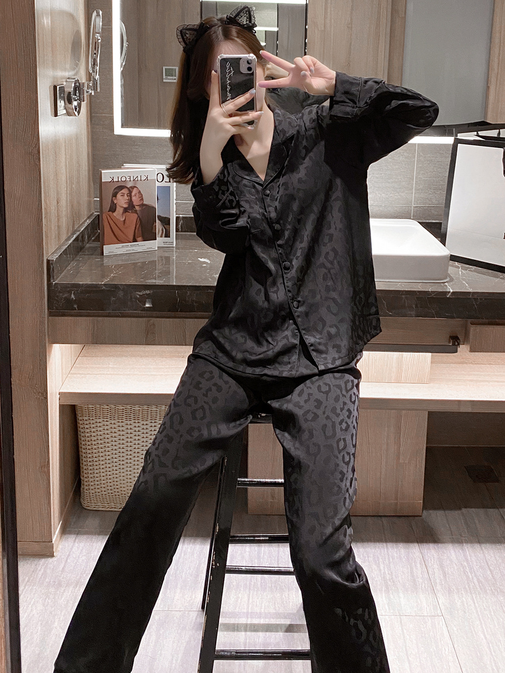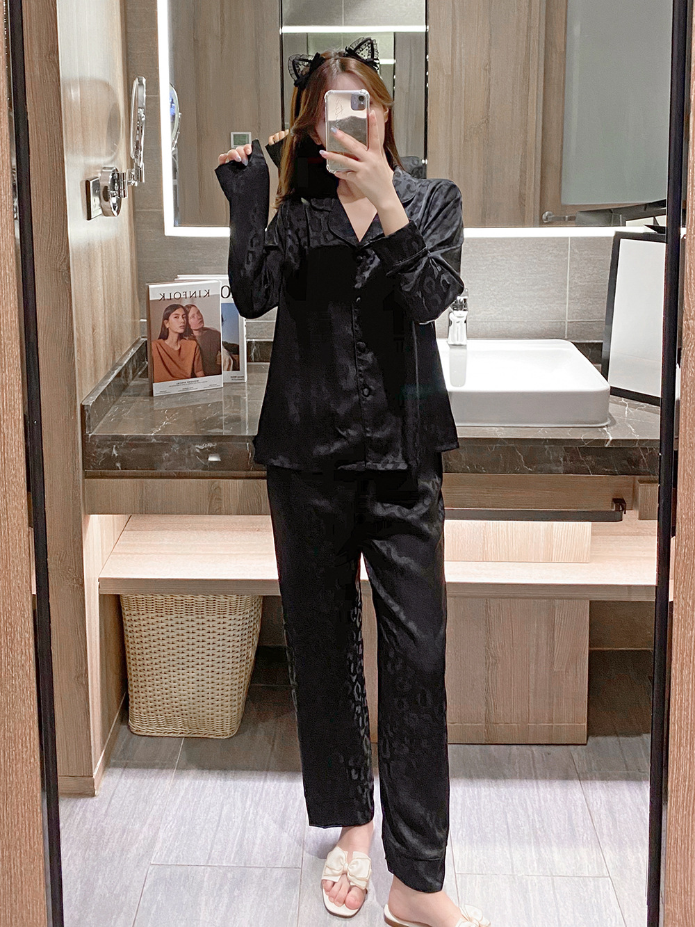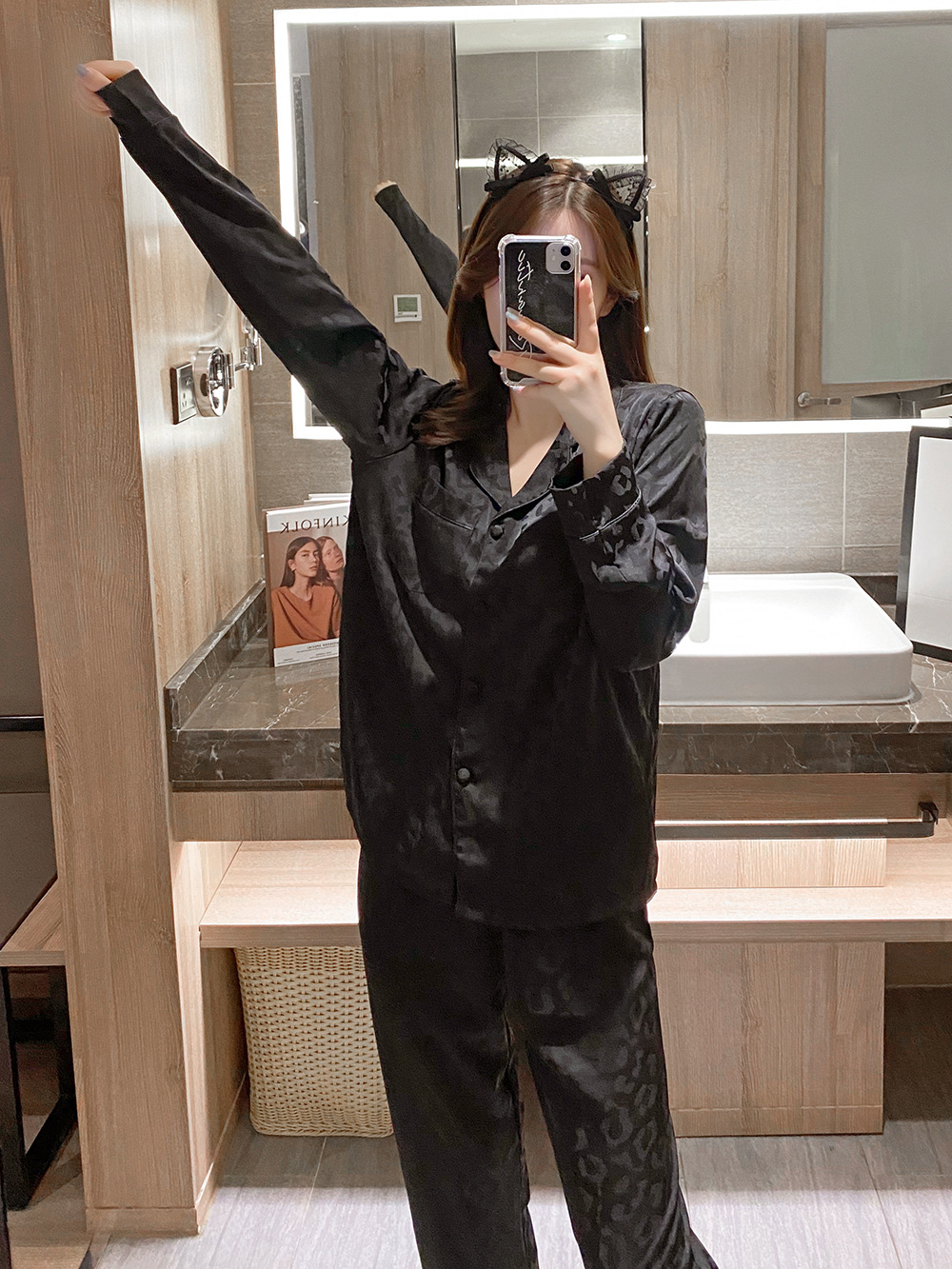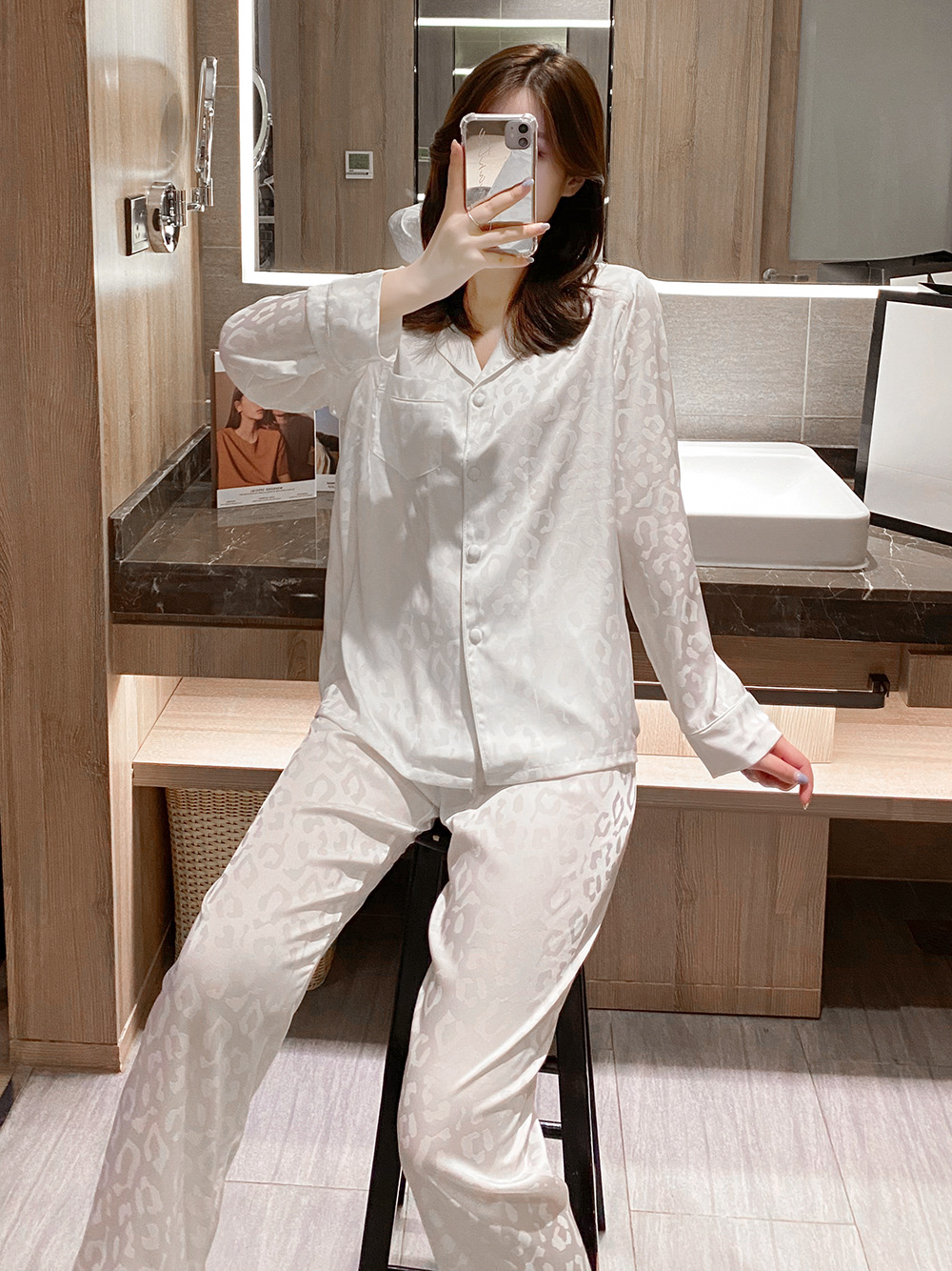 여성을 위한 고급 긴팔 잠옷, 봄과 가을 새로운 스타일의 아이스 실크 바지, 여름 실크 가정복 세트, 야외에서 착용 가능
