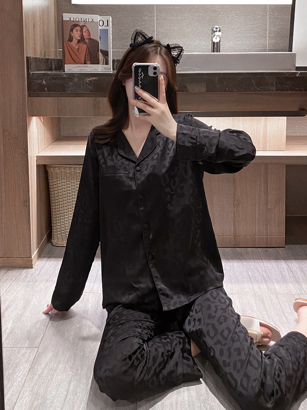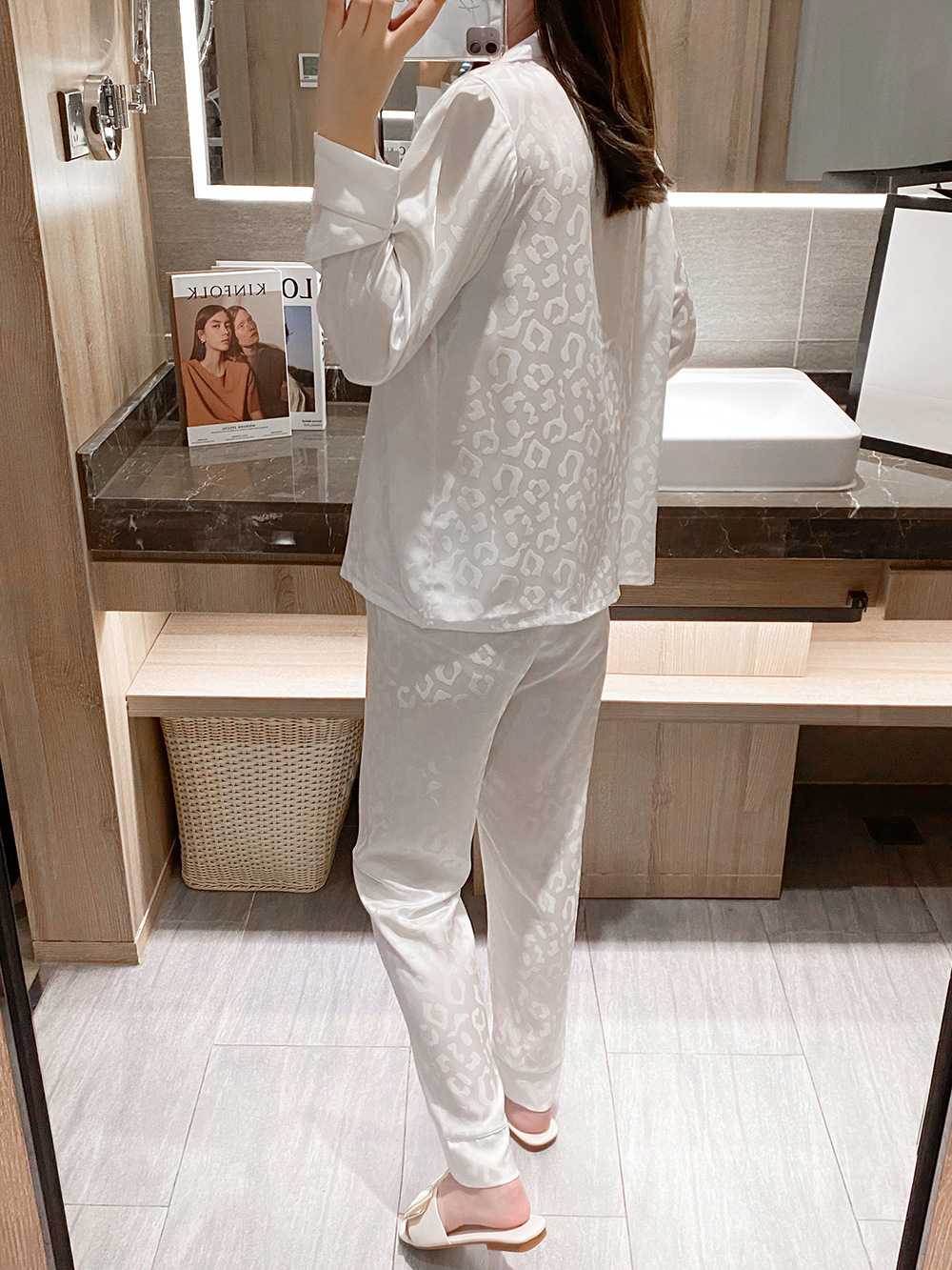 여성을 위한 고급 긴팔 잠옷, 봄과 가을 새로운 스타일의 아이스 실크 바지, 여름 실크 가정복 세트, 야외에서 착용 가능스토어 가기