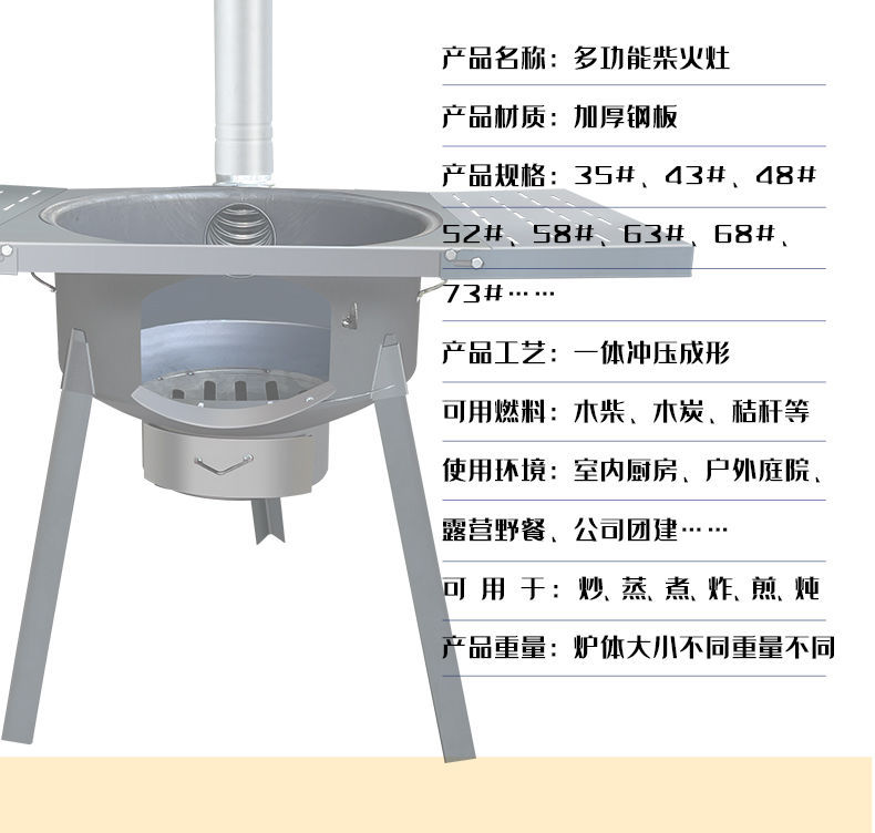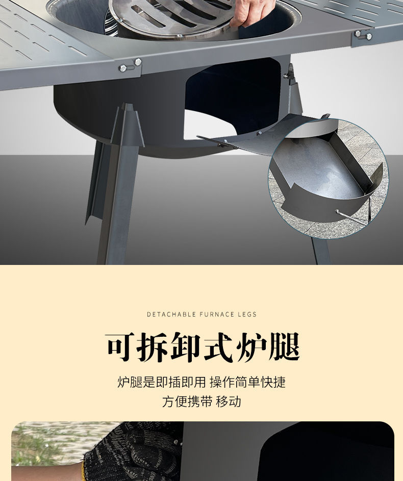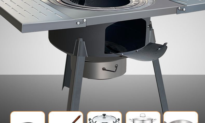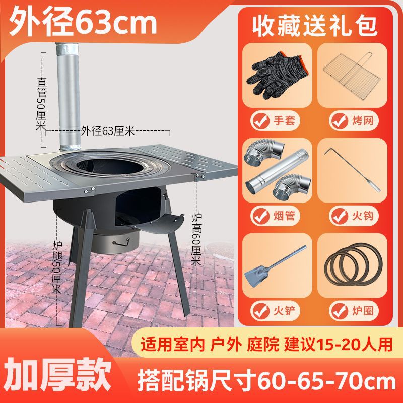 • 63CM 두꺼운 1피스 스토브 + 접이식 테이블 + 냄비 + 뚜껑 + 링