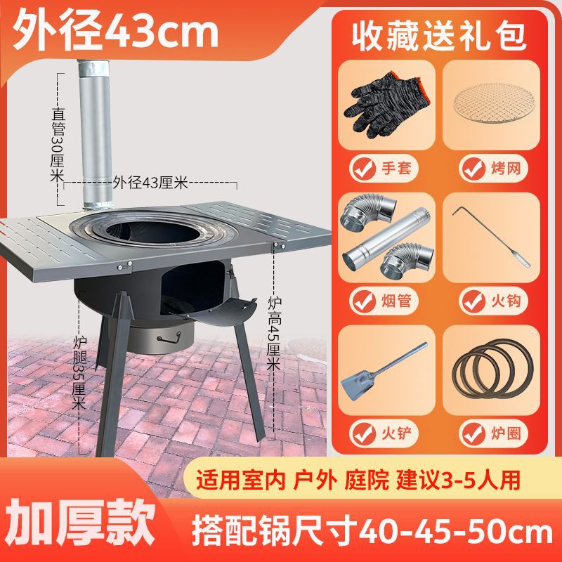 • 43CM 두꺼운 1피스 스토브 + 접이식 테이블 + 냄비 + 뚜껑 + 링