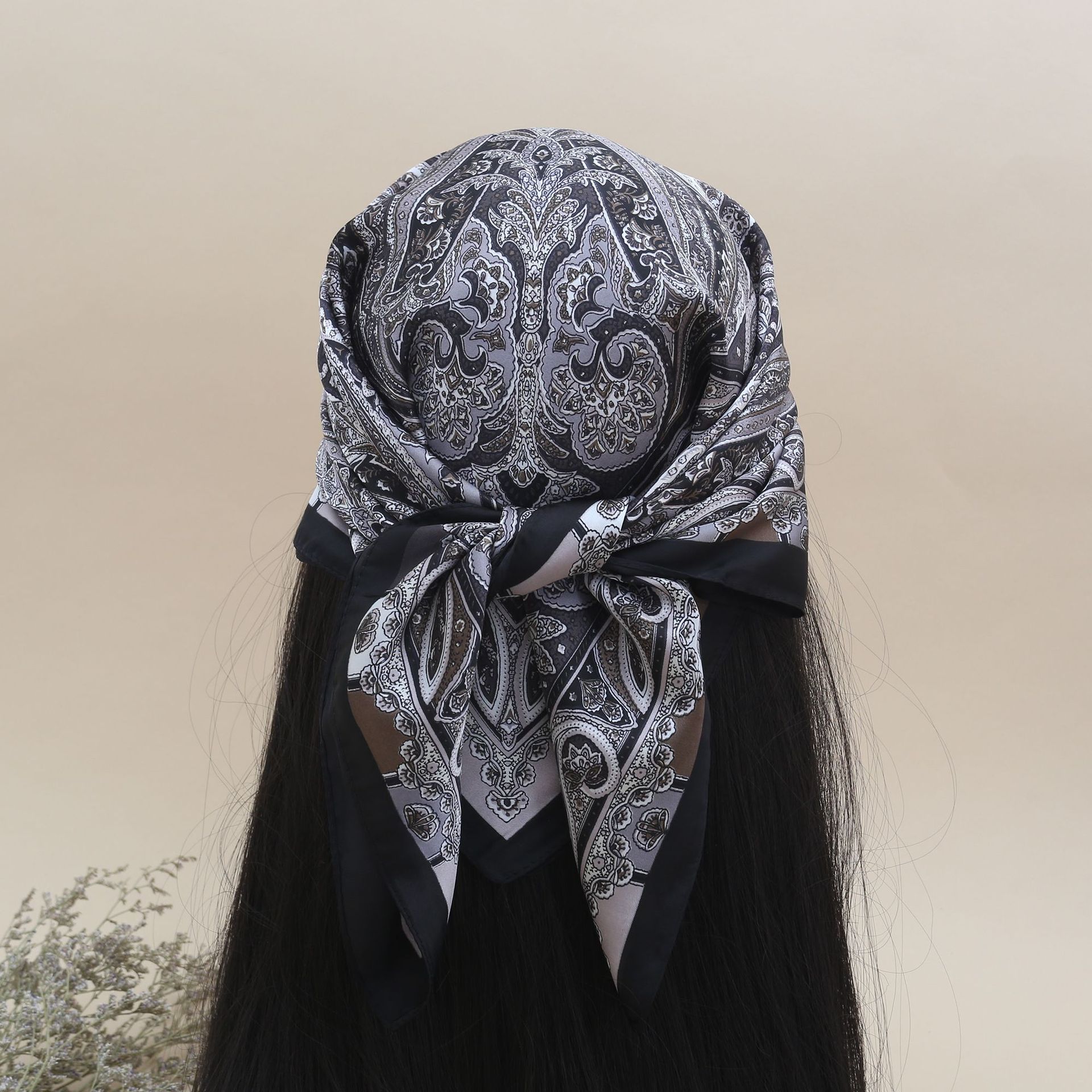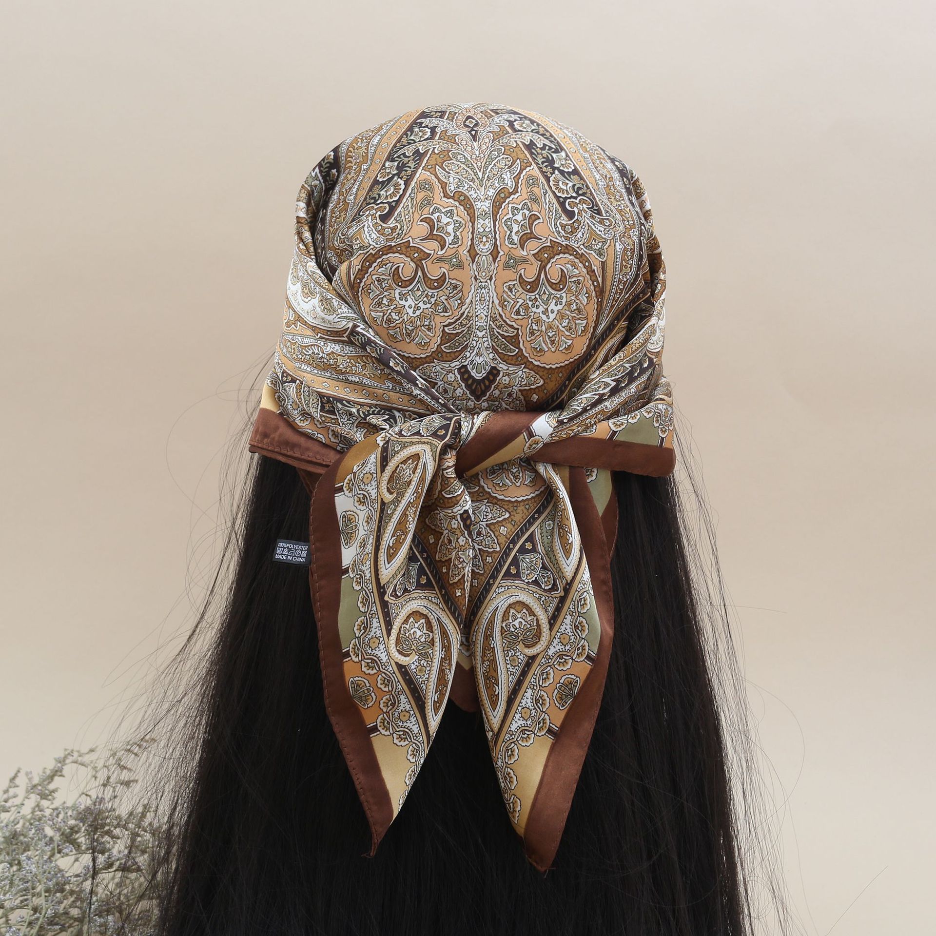 여성용 캐슈넛 스퀘어 실크 스카프 2025 신상 여성용 넥 스카프, 넥 액세서리, 넥밴드, 페이즐리 새틴 실크 스카프스토어 가기