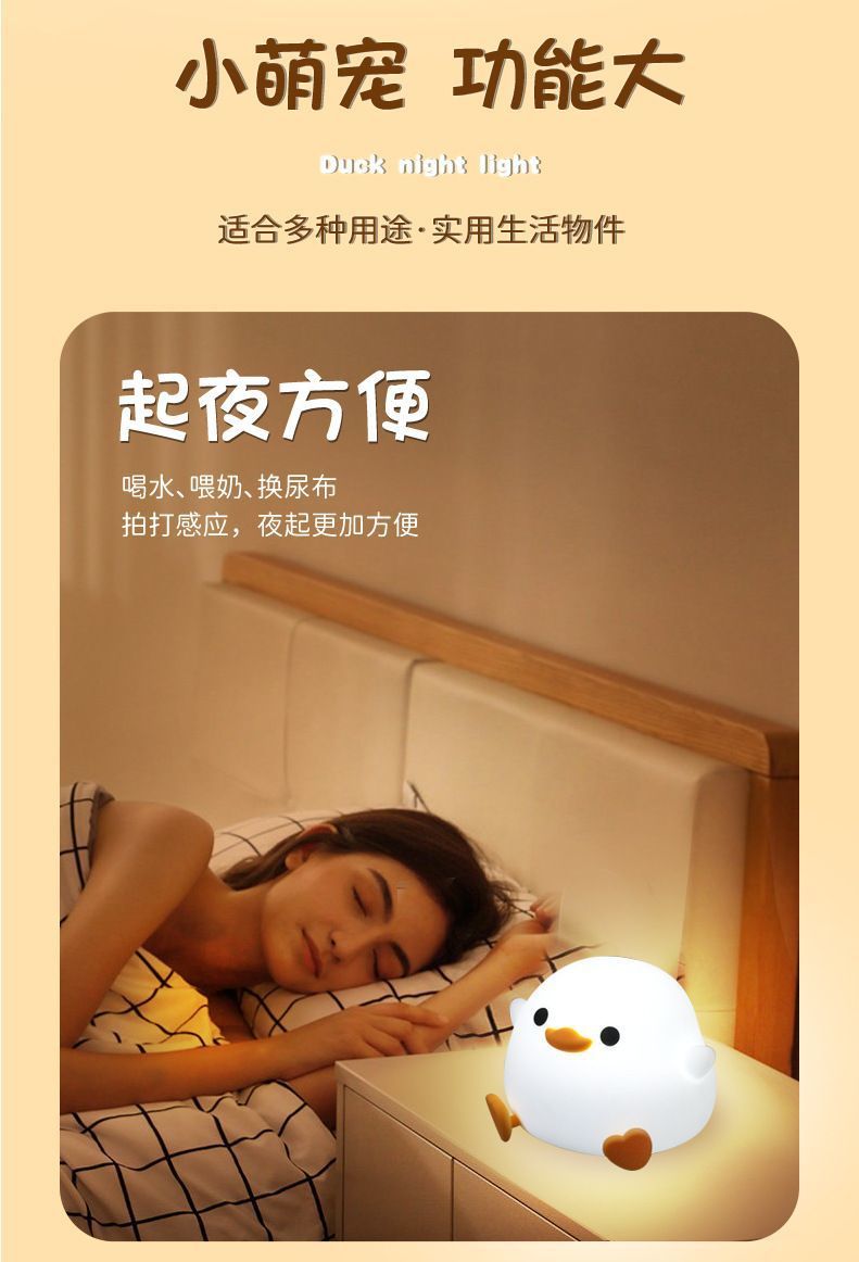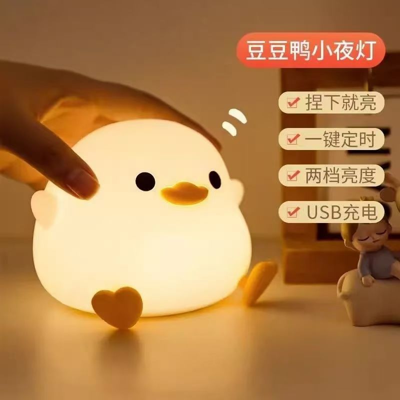 국경 간 Doudou Duck 실리콘 야간 조명 아기 수유 특수 야간 침대 옆 충전식 패팅 램프 수면 분위기 조명스토어 가기