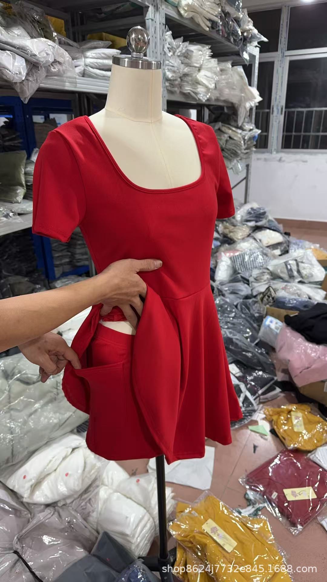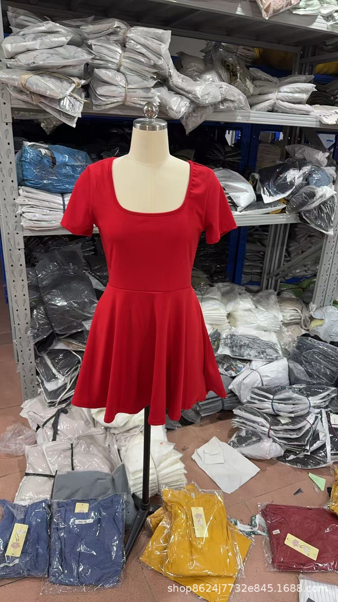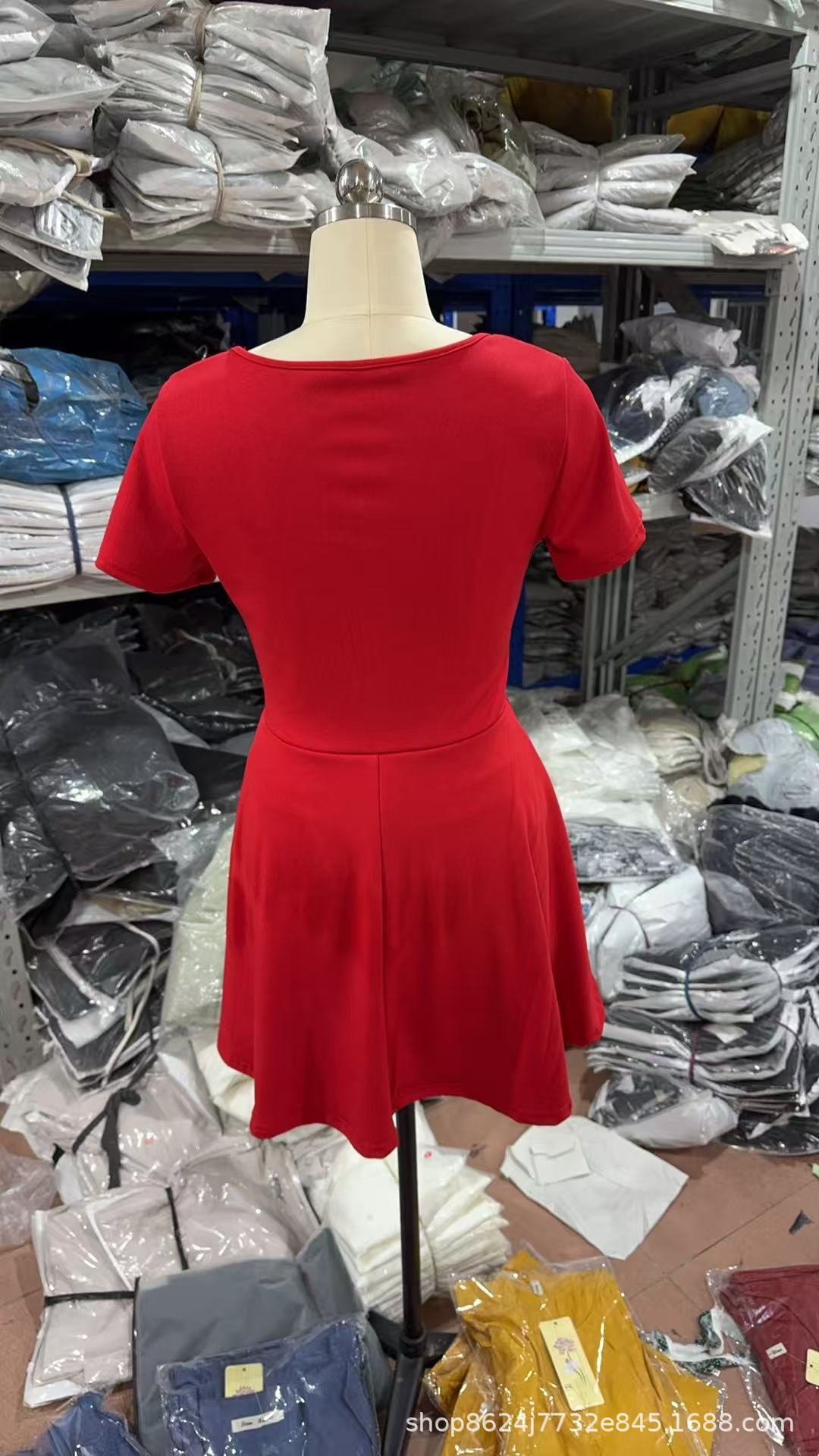 Spot 2025 여름 신작 유럽과 미국 Amazon temu AliExpress 브라운 니트 짧은 캐주얼 드레스스토어 가기