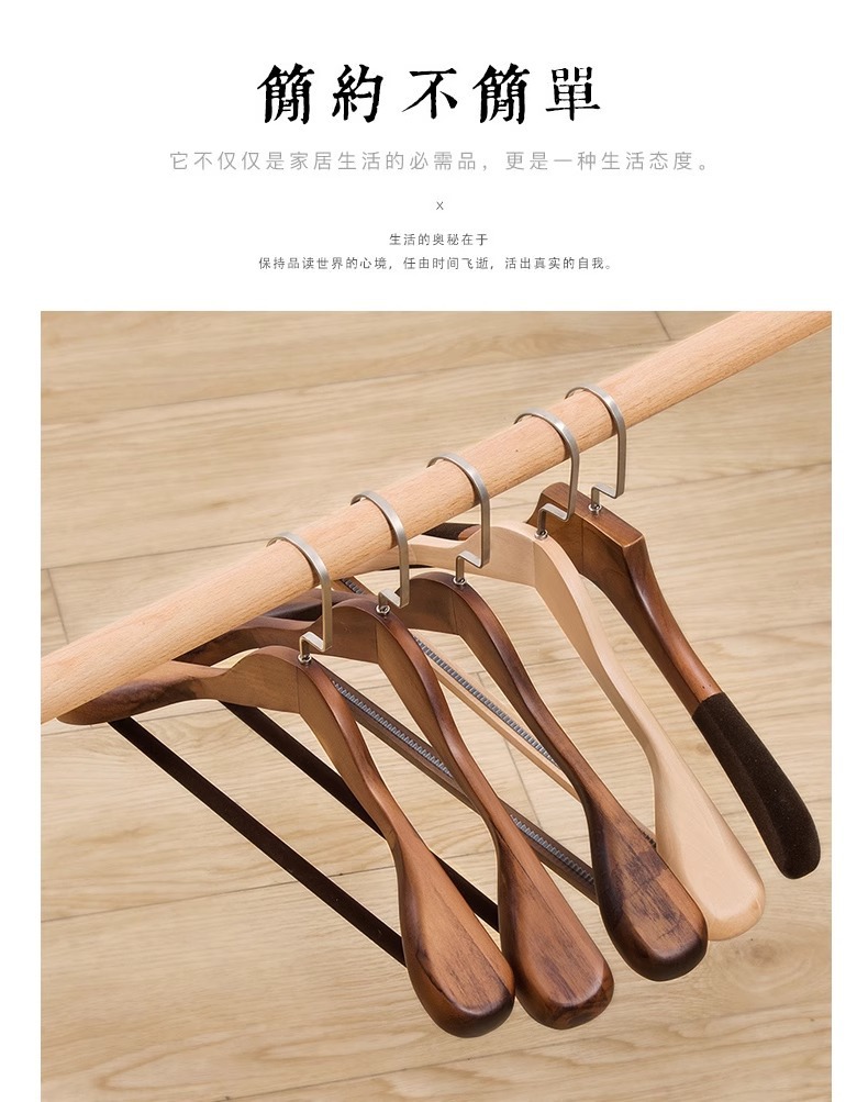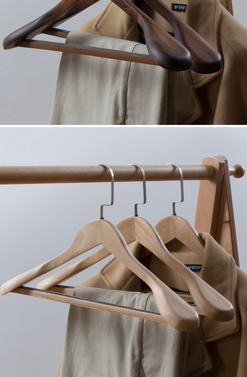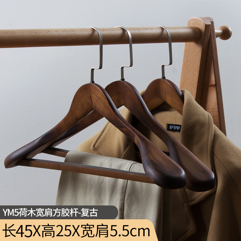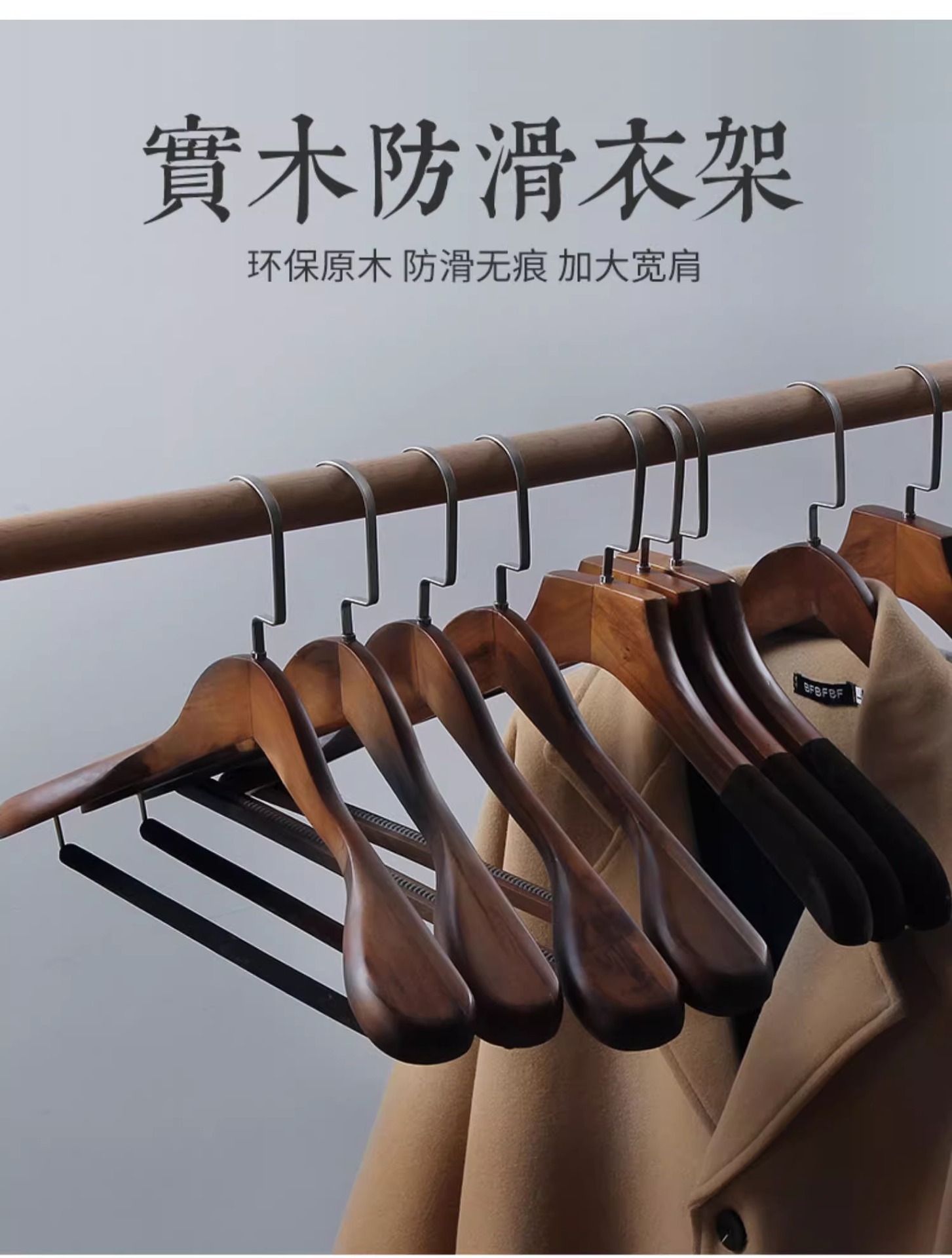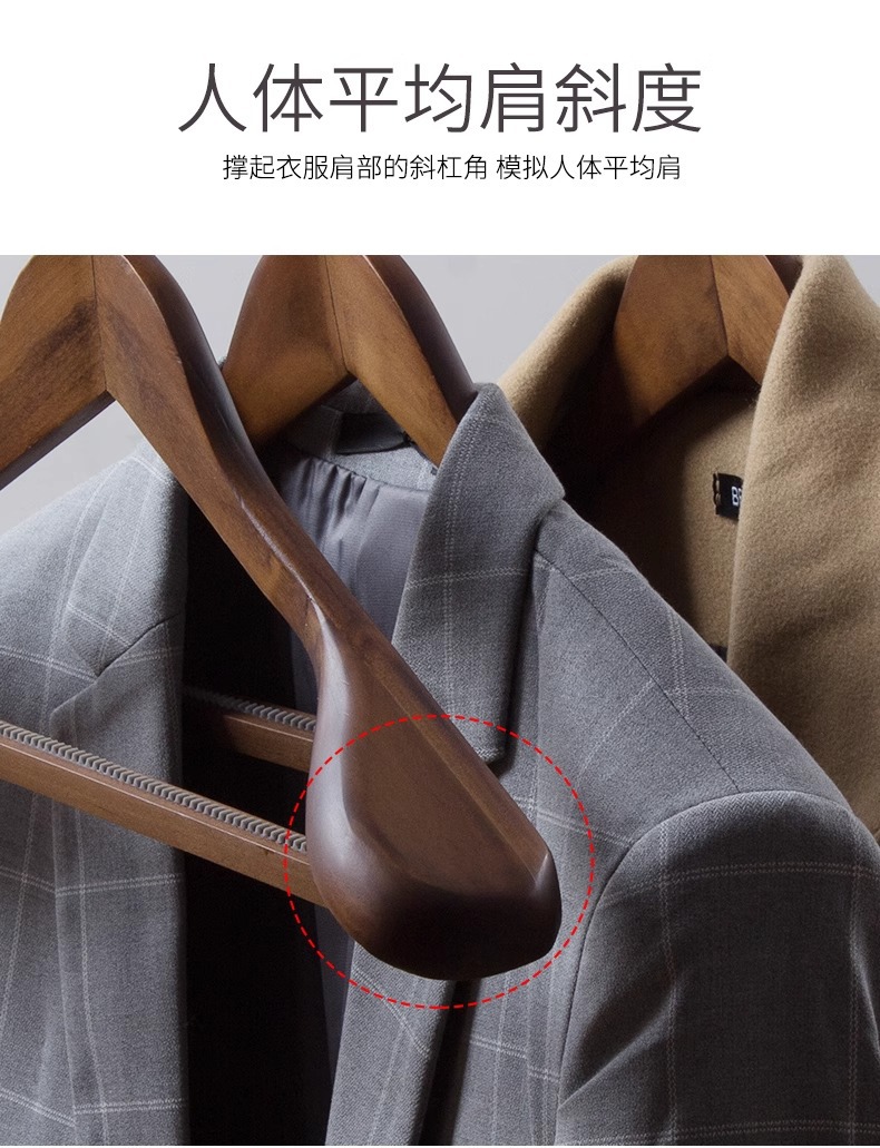 가정용 넓은 어깨 단단한 나무 옷걸이, 흔적 없는 미끄럼 방지 양복 나무 옷걸이, 호텔 의류 매장 양복 옷 지지대