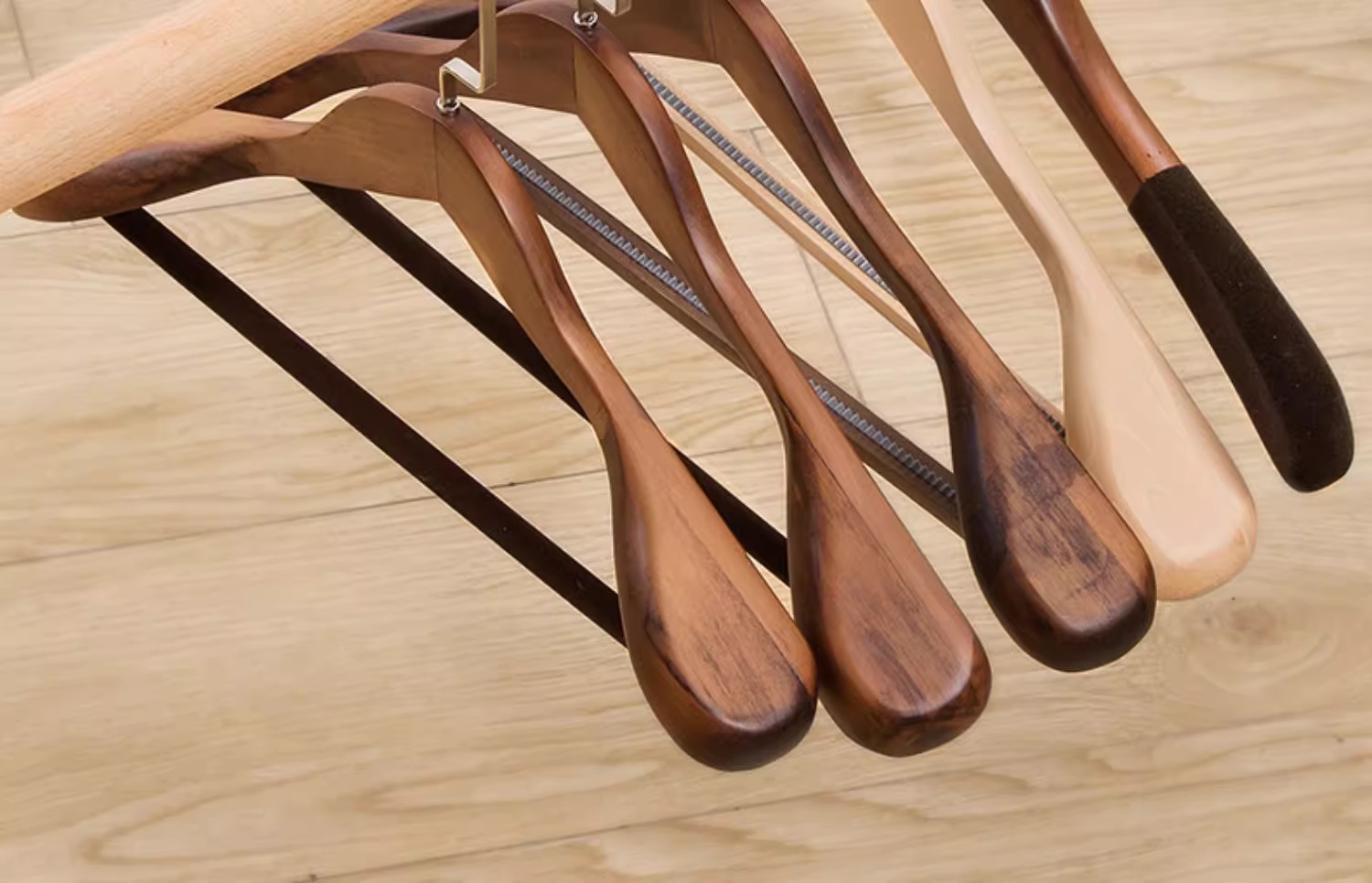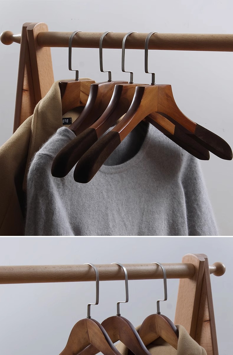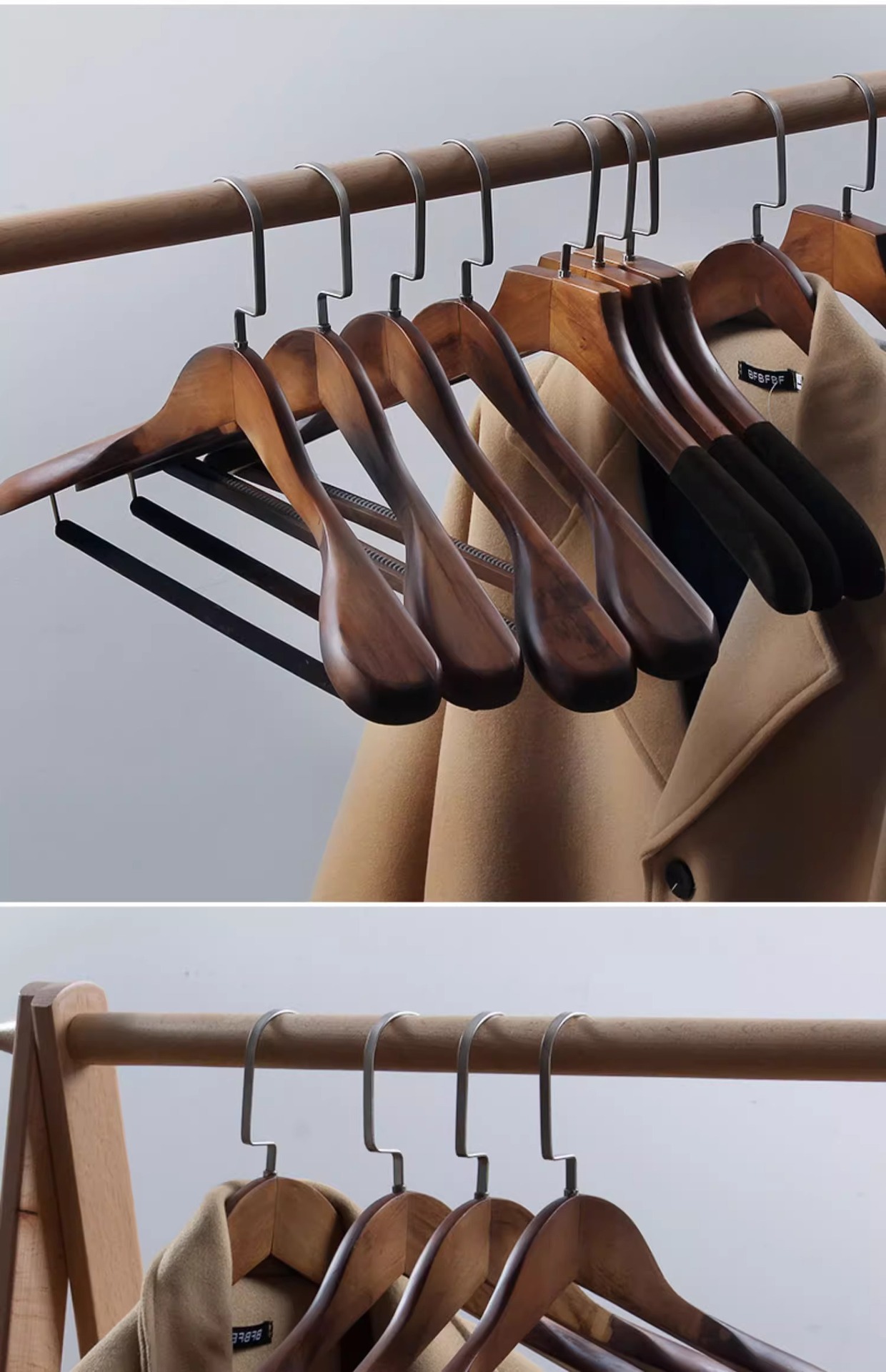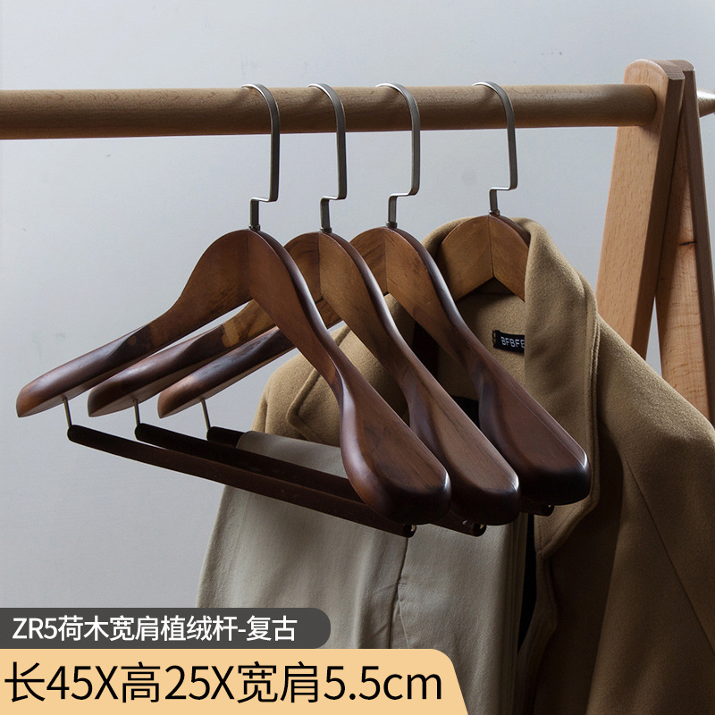 가정용 넓은 어깨 단단한 나무 옷걸이, 흔적 없는 미끄럼 방지 양복 나무 옷걸이, 호텔 의류 매장 양복 옷 지지대