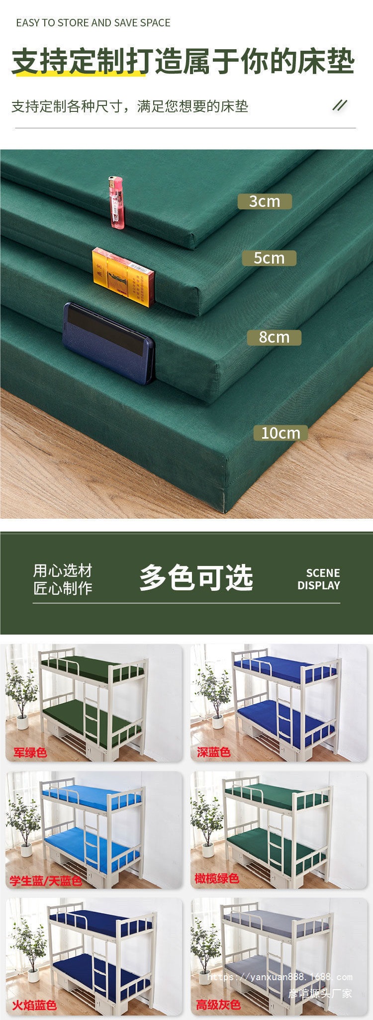 군대 녹색 흰색 표준 내부 스펀지 매트리스 병원 학생 기숙사 싱글 이층 침대 매트리스 하드스토어 가기