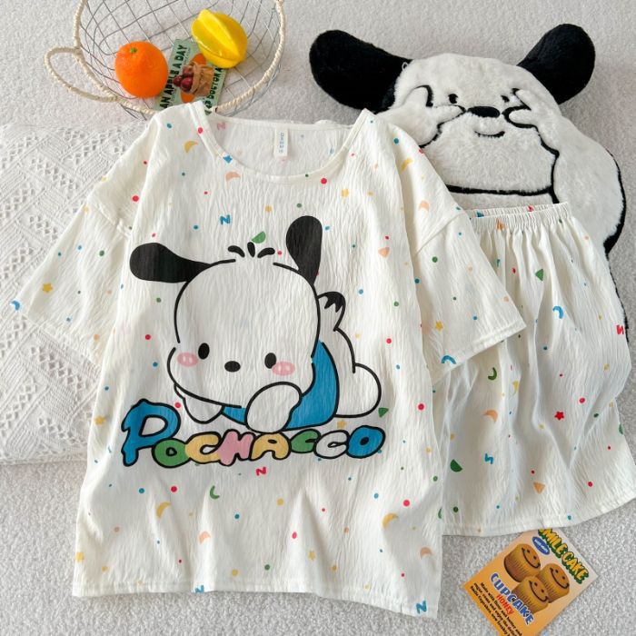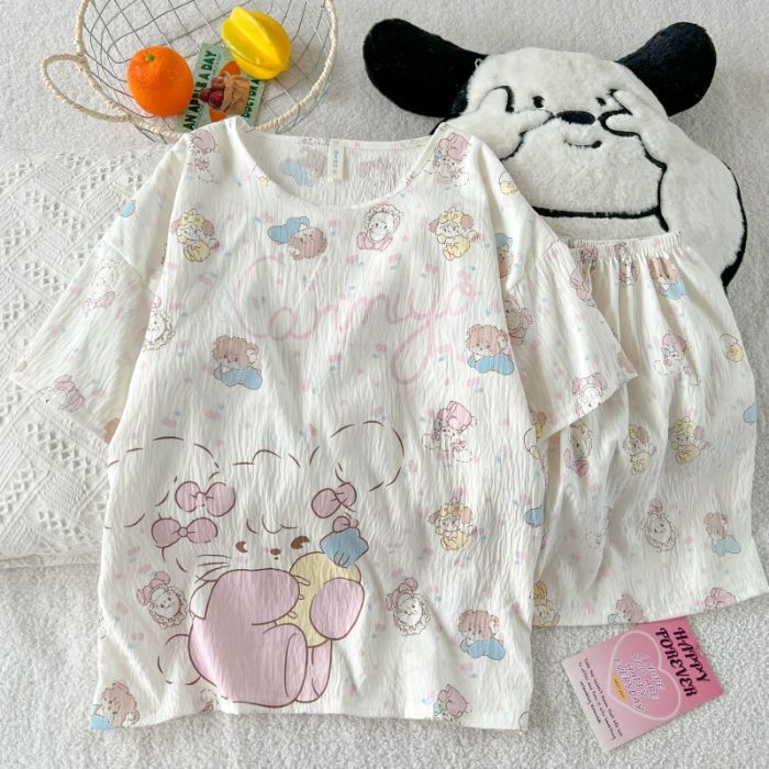 2025 새로운 잠옷 여성 반팔 반바지 여름 얇은 만화 구름 면화 정장 달콤한 가정 의류는 외부에 착용 가능스토어 가기