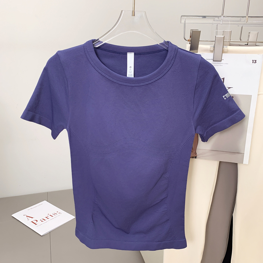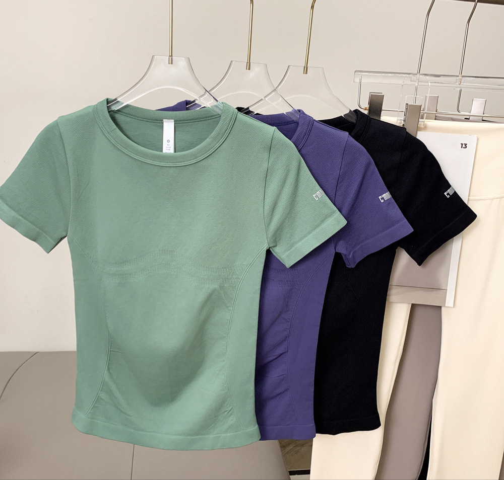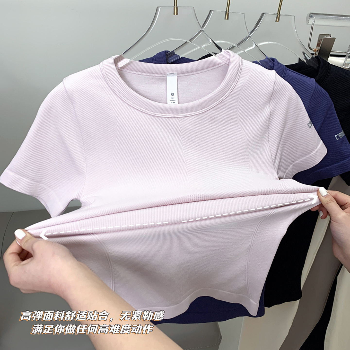 봄과 여름 원활한 요가 반팔 티셔츠 여성 스포츠 피트니스 슬리밍 스레드 속건성 탑 러닝 트레이닝 요가웨어스토어 가기
