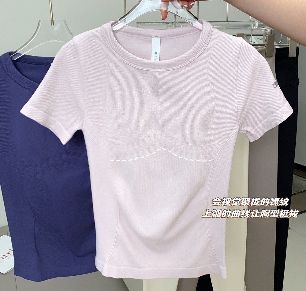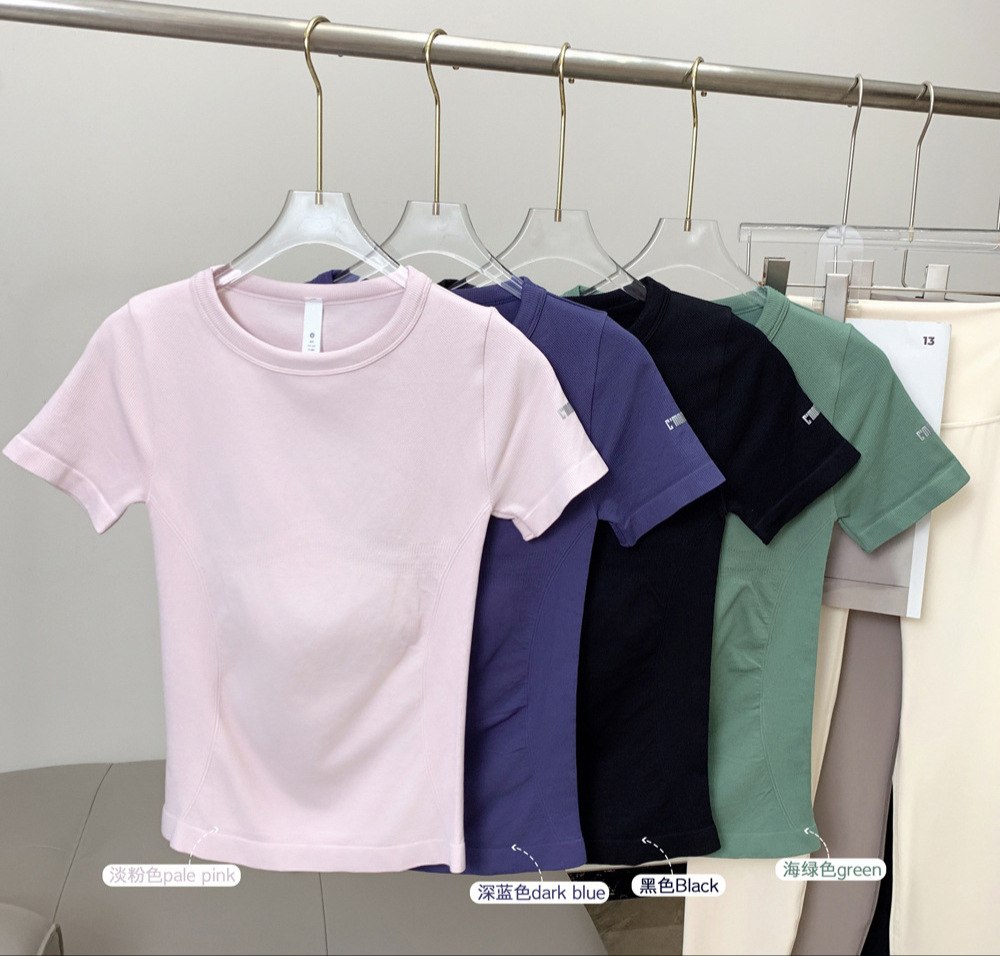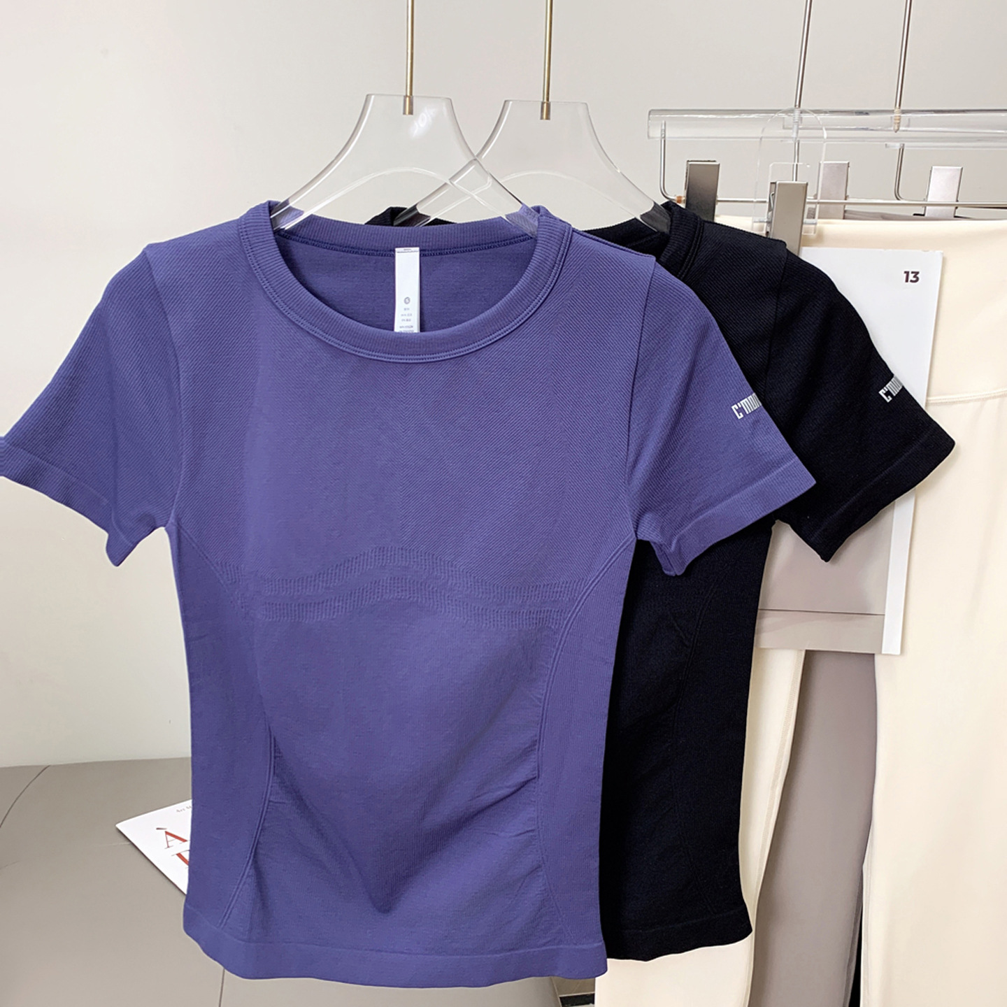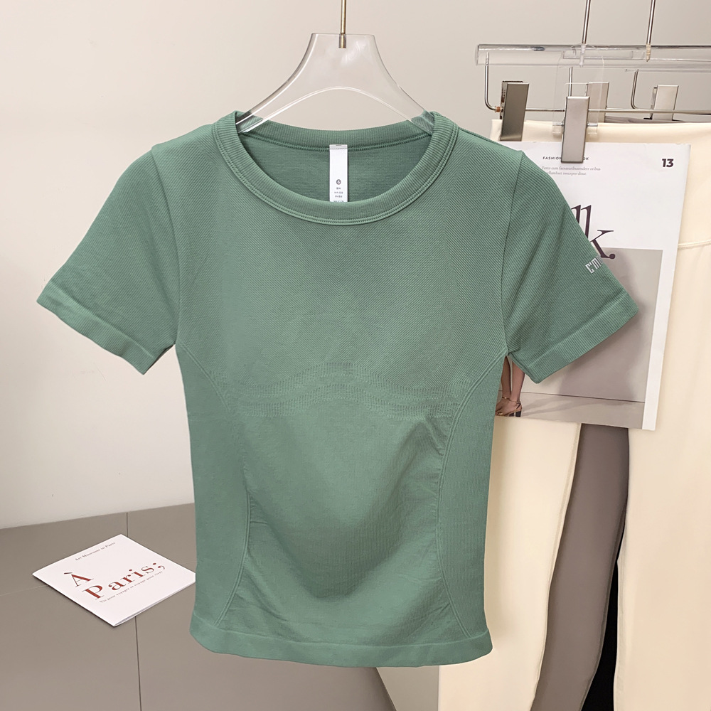 봄과 여름 원활한 요가 반팔 티셔츠 여성 스포츠 피트니스 슬리밍 스레드 속건성 탑 러닝 트레이닝 요가웨어스토어 가기