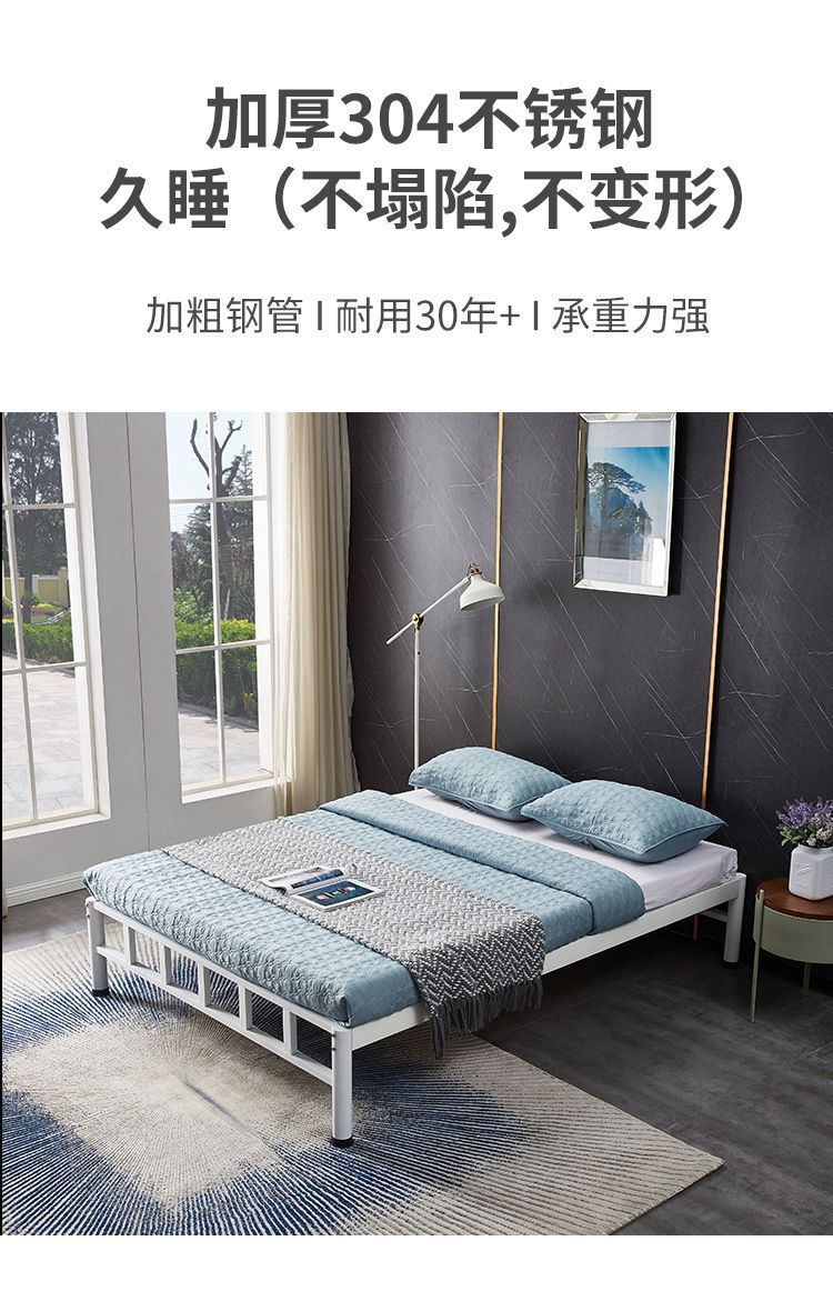 스테인레스 스틸 침대 다다미 바닥 침대 프레임 두꺼운 더블 어린이 임대 주택 싱글 침대 1.35m 제작스토어 가기