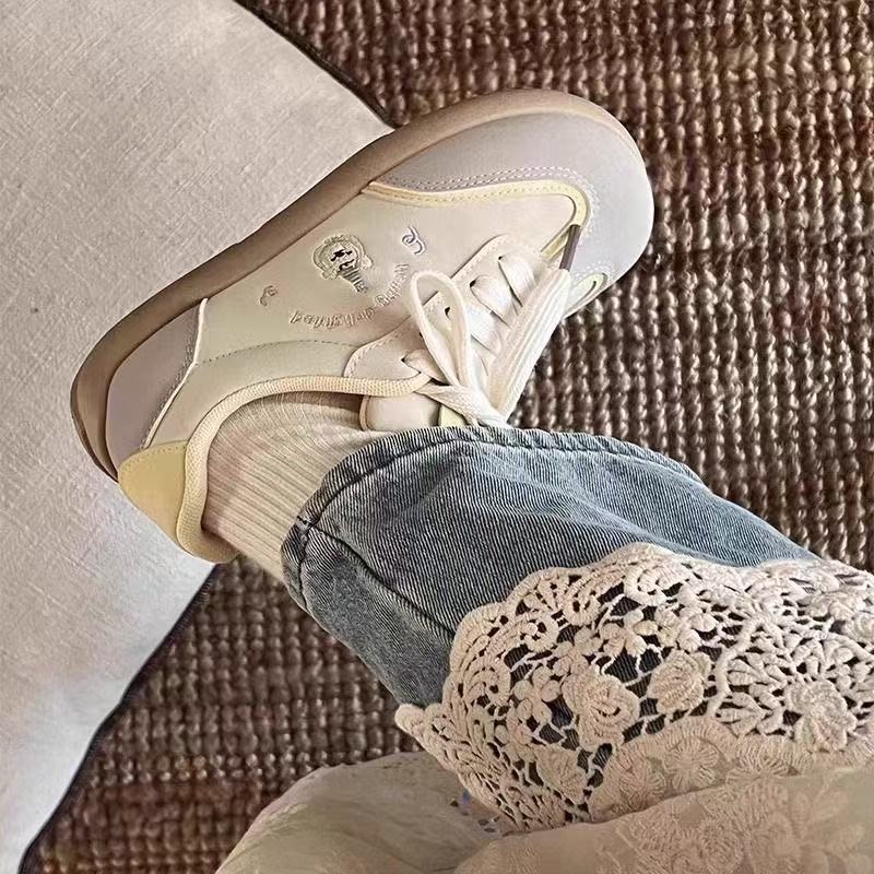 여성용 우유 푸푸 베어 운동화 2025 새로운 여름 다목적 퍼프 화이트 신발 여성용 복고풍 두꺼운 밑창 도덕 훈련 신발