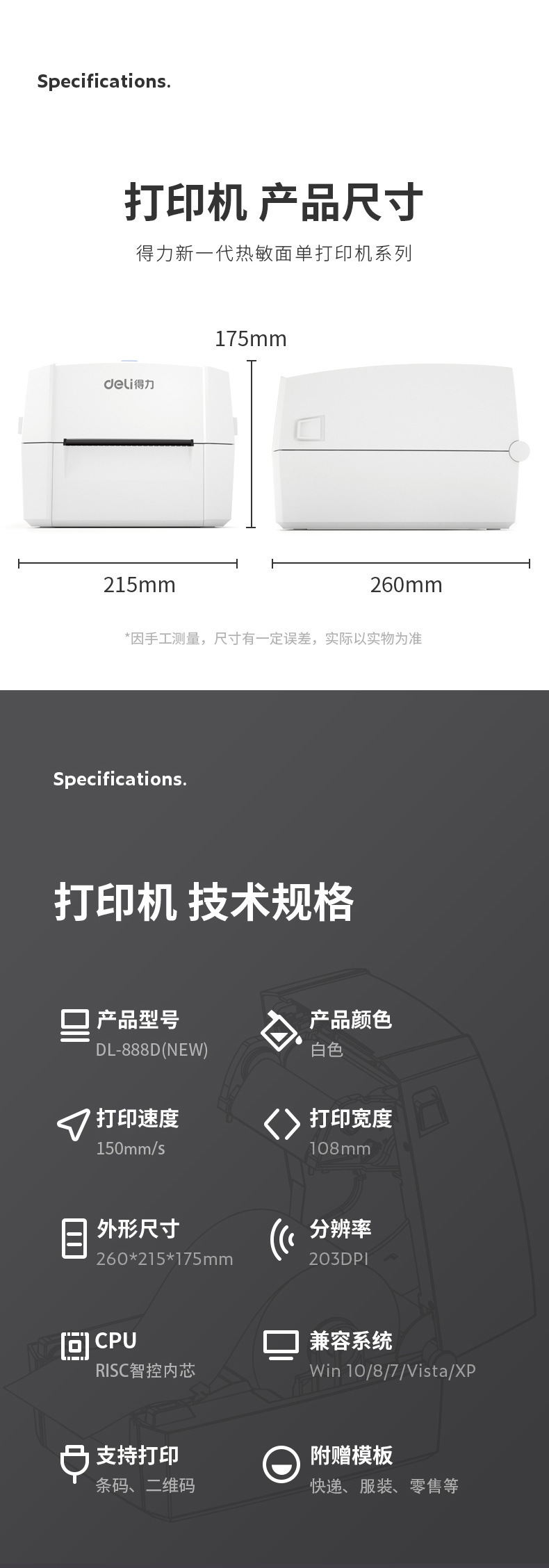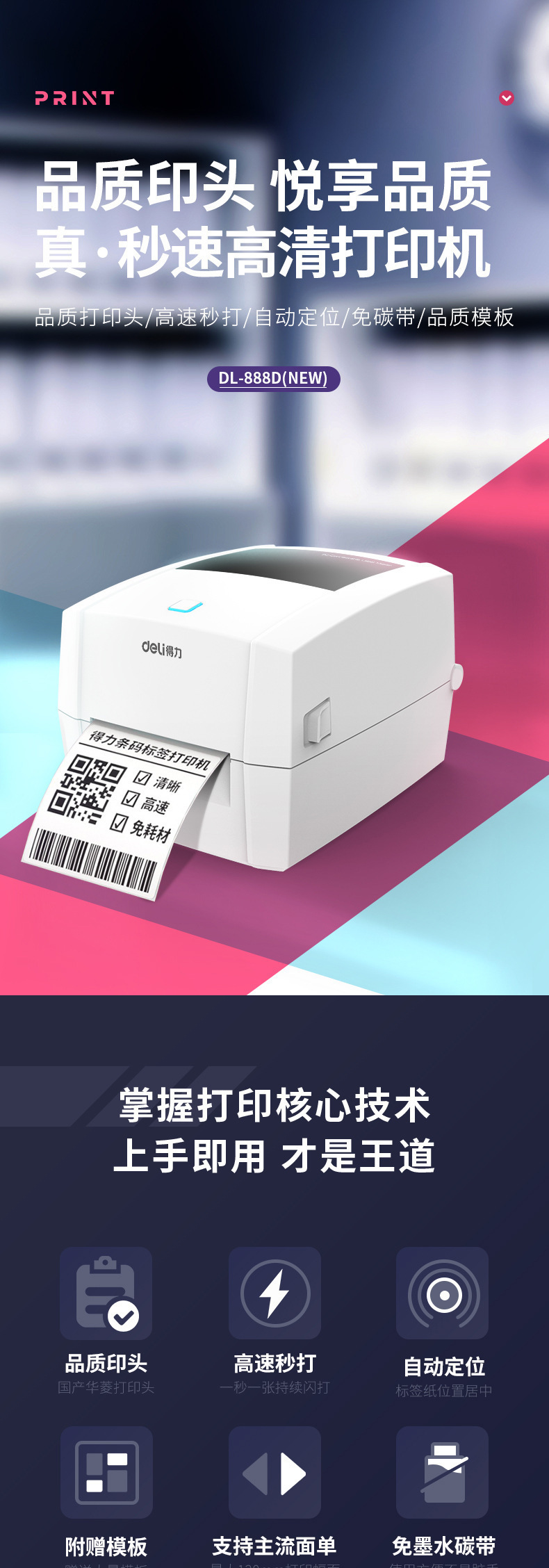 Deli DL-888D (NEW) 바코드 프린터 전자 인쇄 접착식 익스프레스 열전사 라벨 프린터스토어 가기