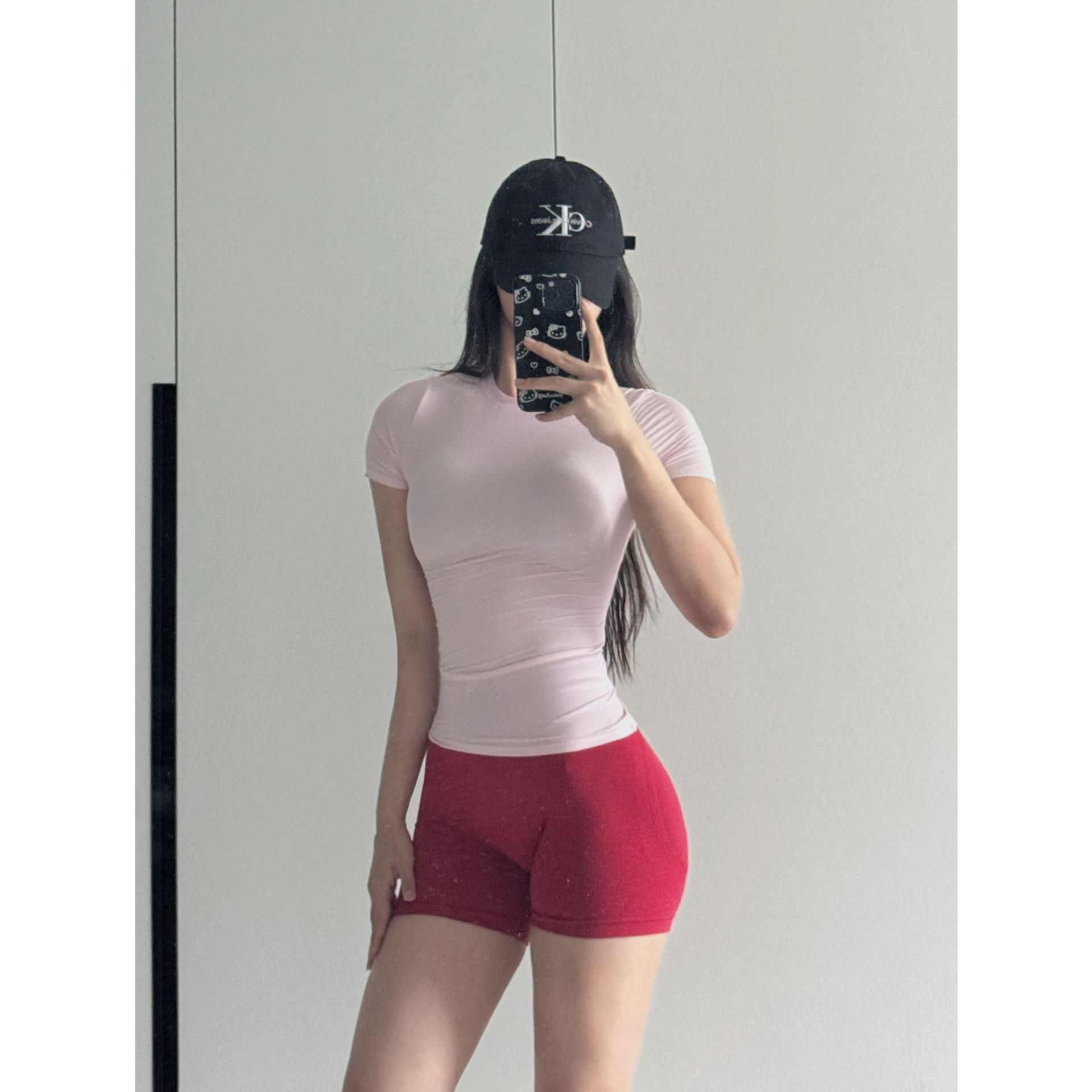 [차오라이트] 카다시안 티셔츠 타이트 반팔 속건 심플 탑 요가 베이스 T 바디 쉐이핑 1792스토어 가기