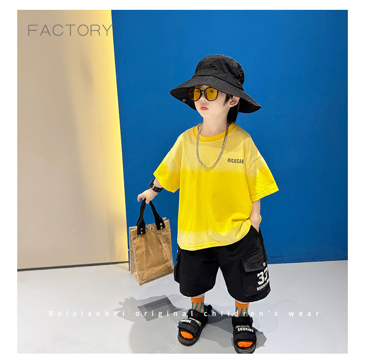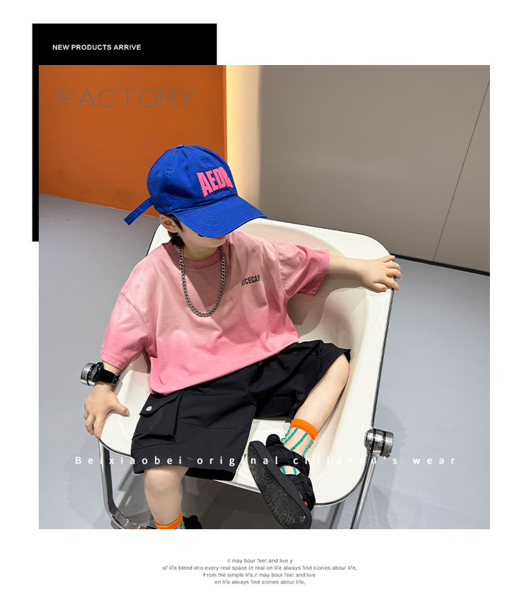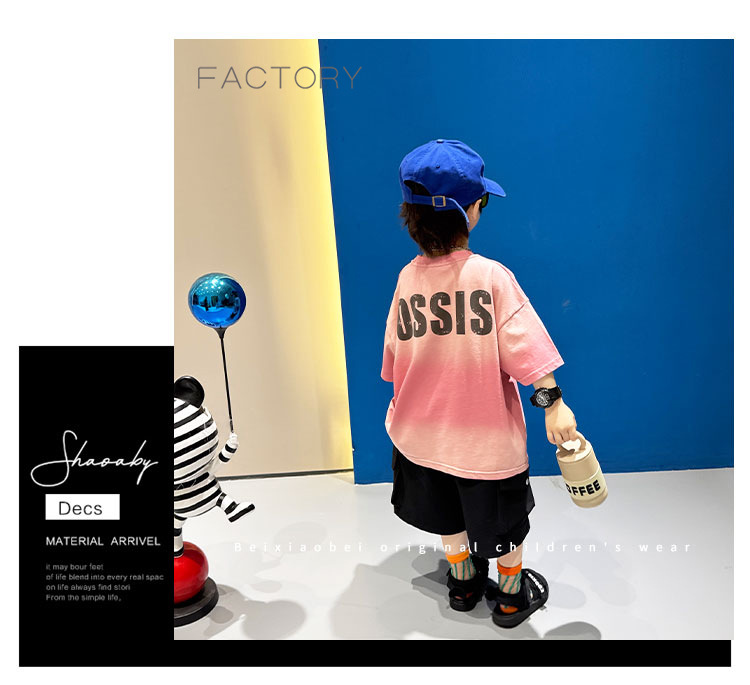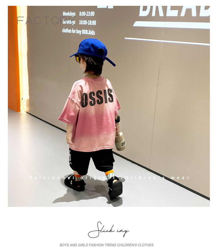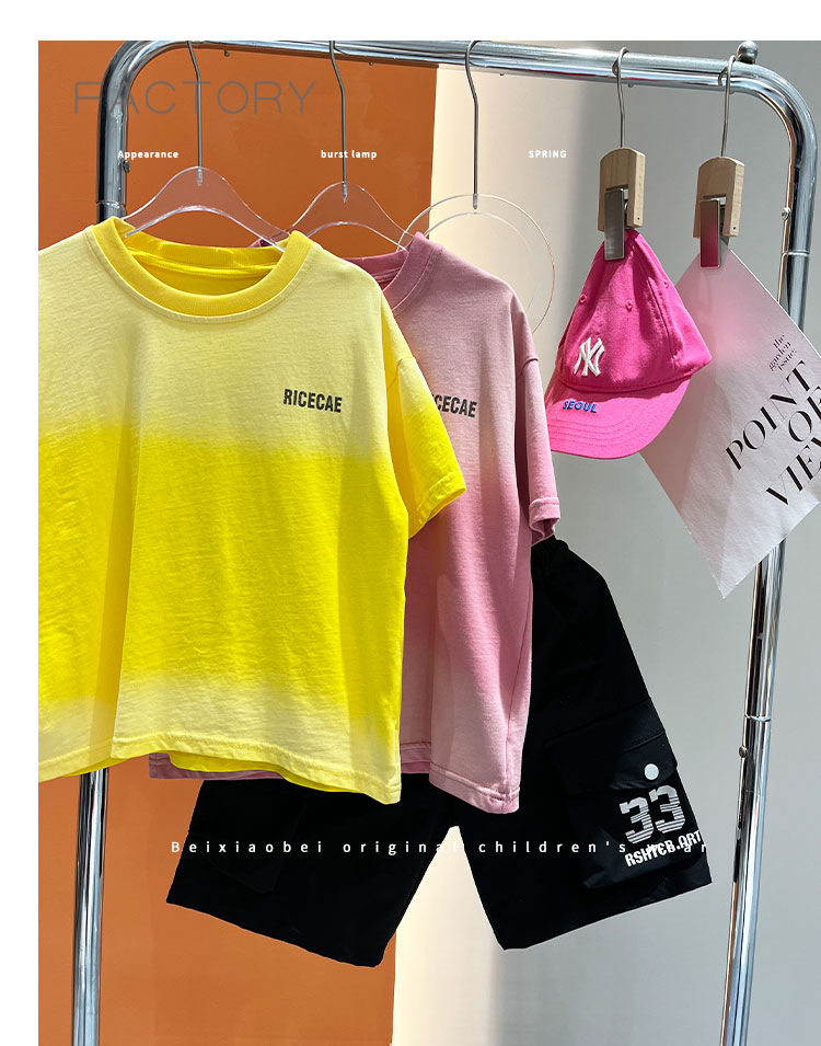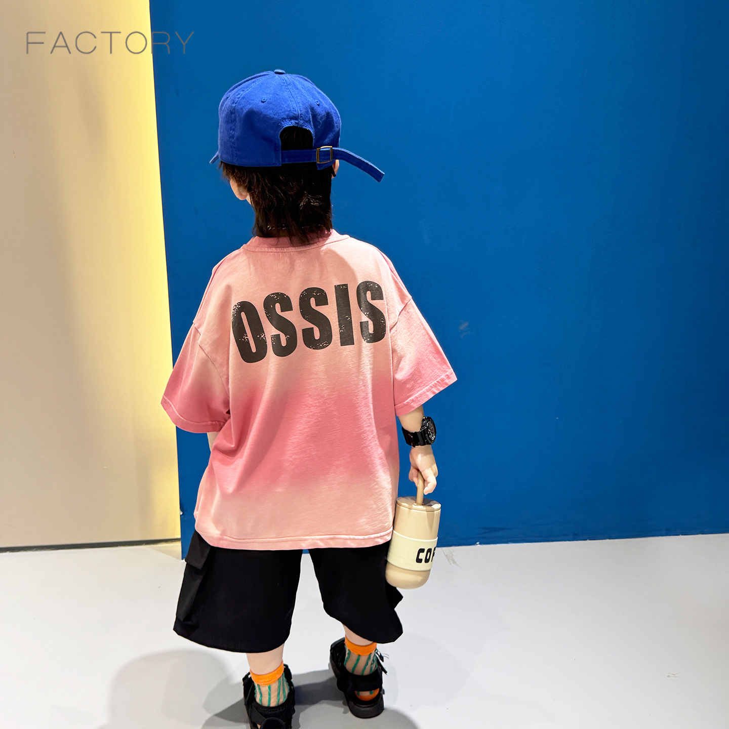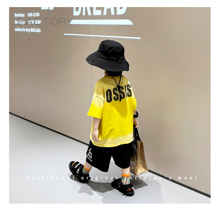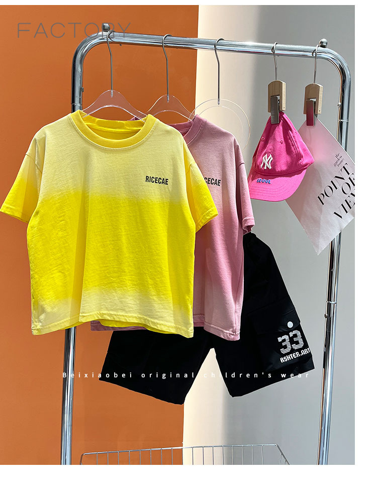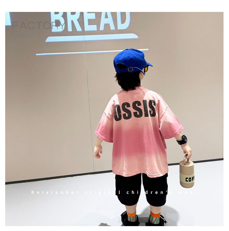 소년 그라데이션 반팔 여름 2025 새로운 스타일 아동 유행 얇은 탑 아기 잘 생긴 느슨한 티셔츠 4스토어 가기