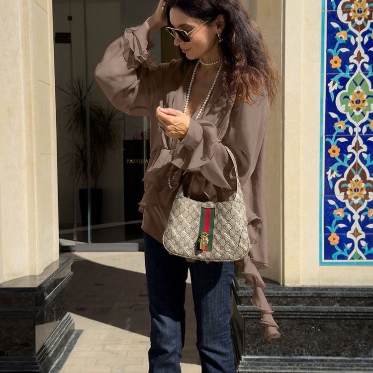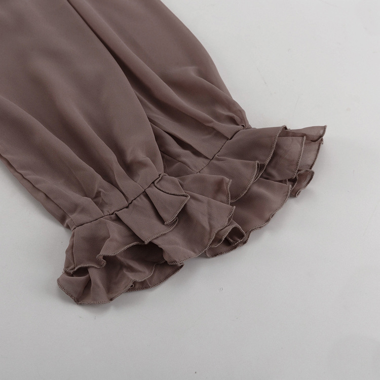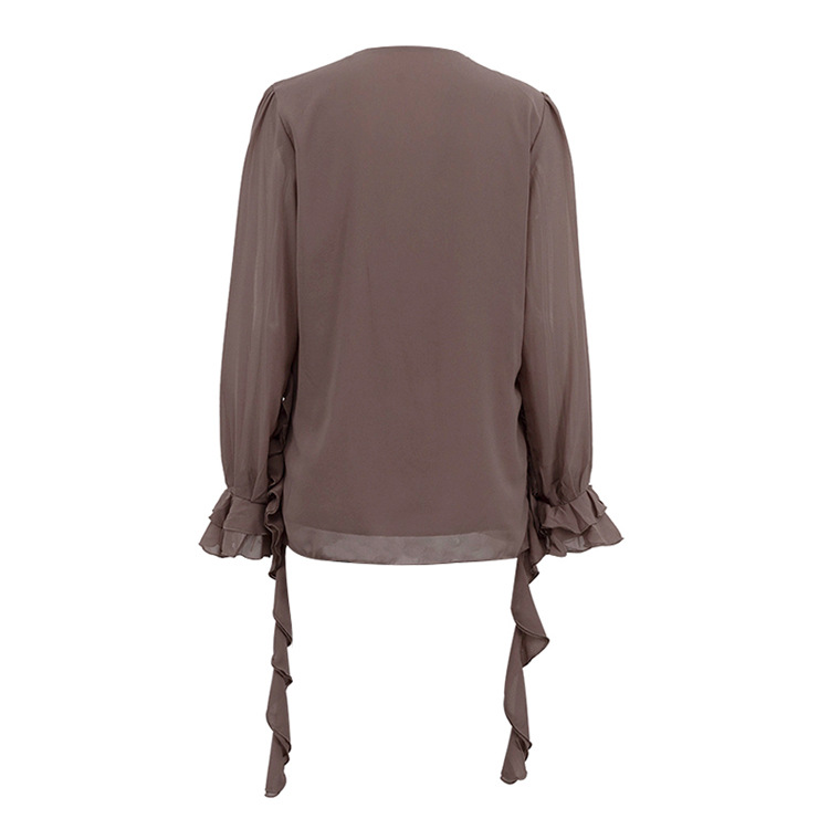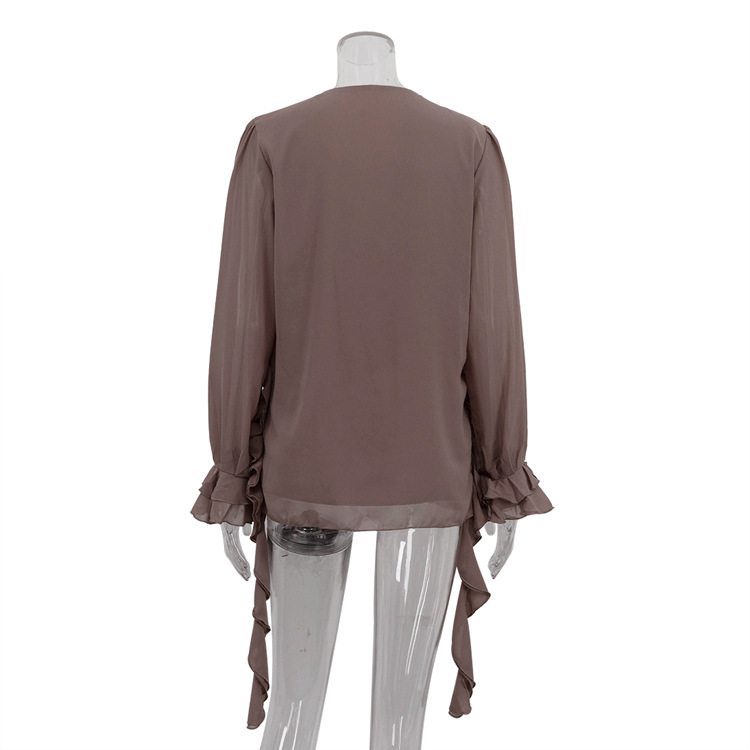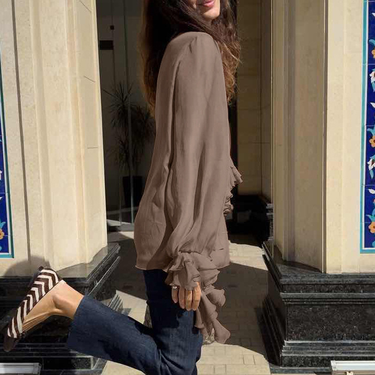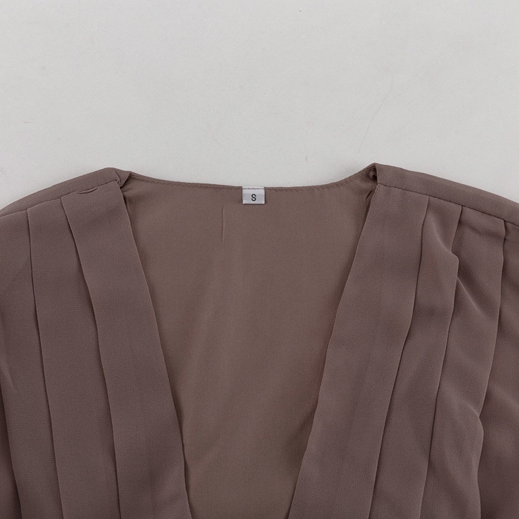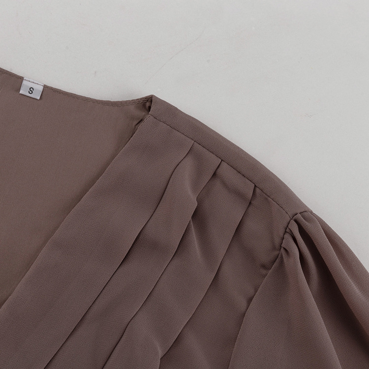 여성을위한 유럽과 미국의 국경 간 쉬폰 v 넥 긴팔 셔츠 2025 새로운 디자인 주름 느슨한 통근 다용도 탑