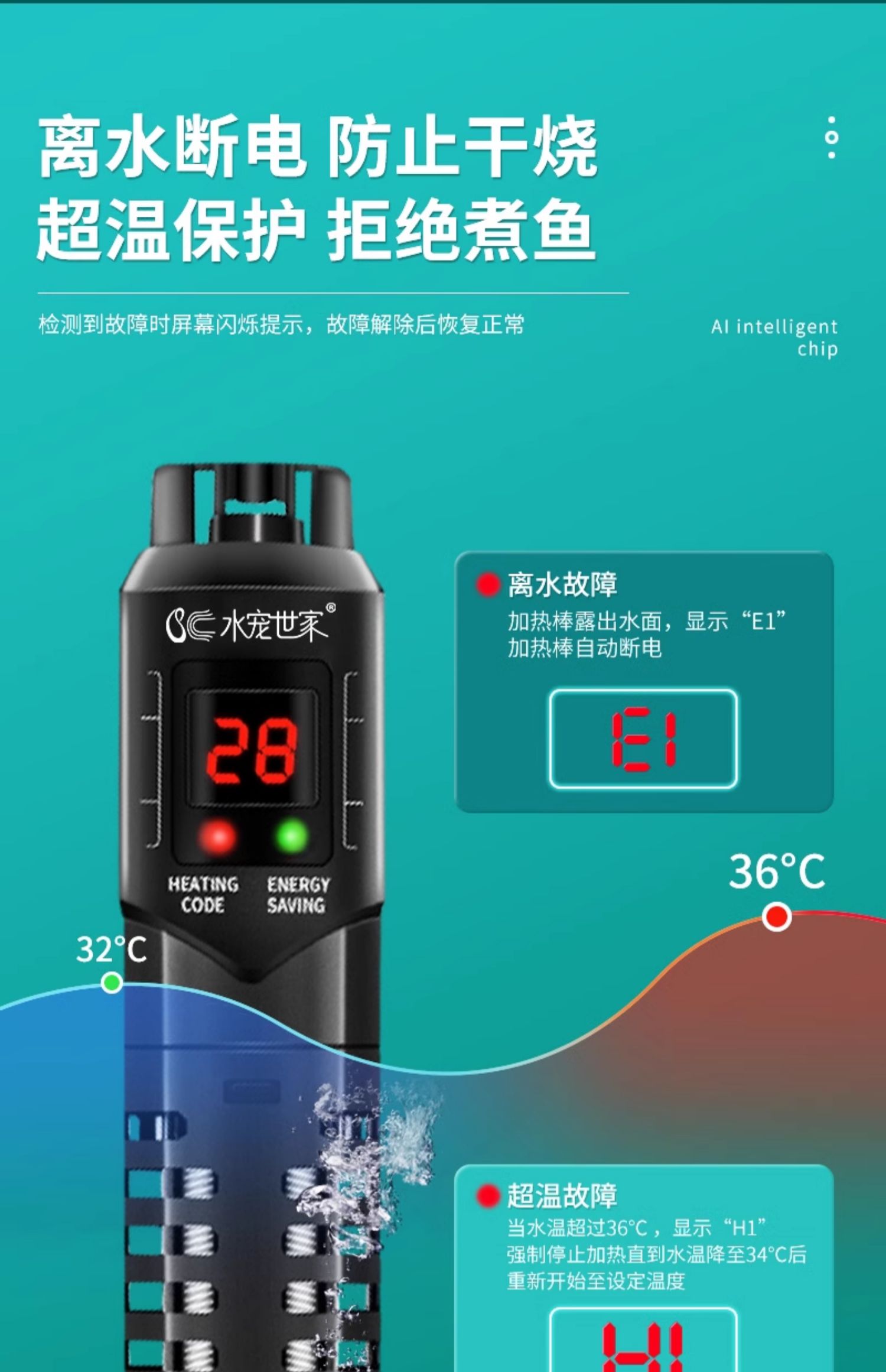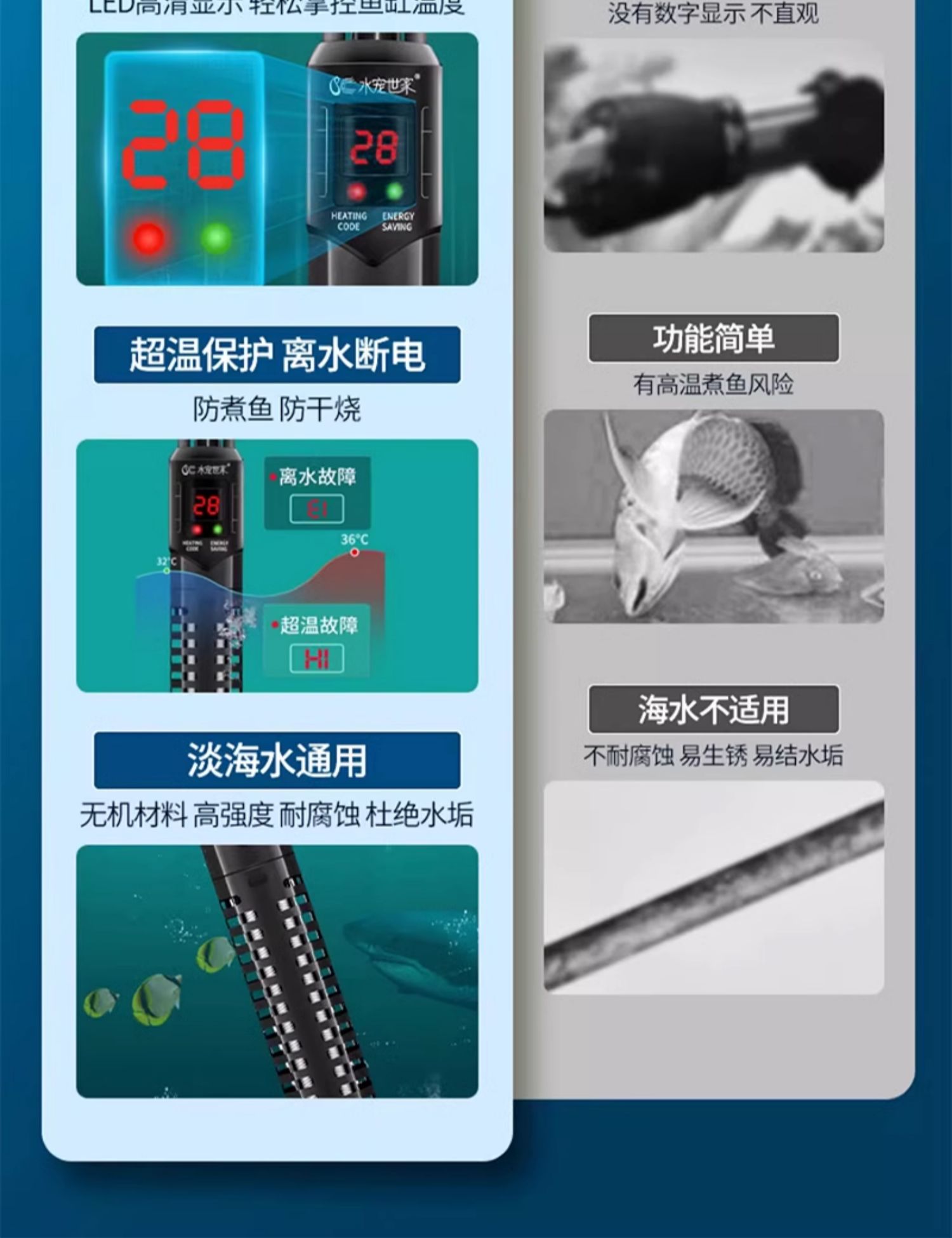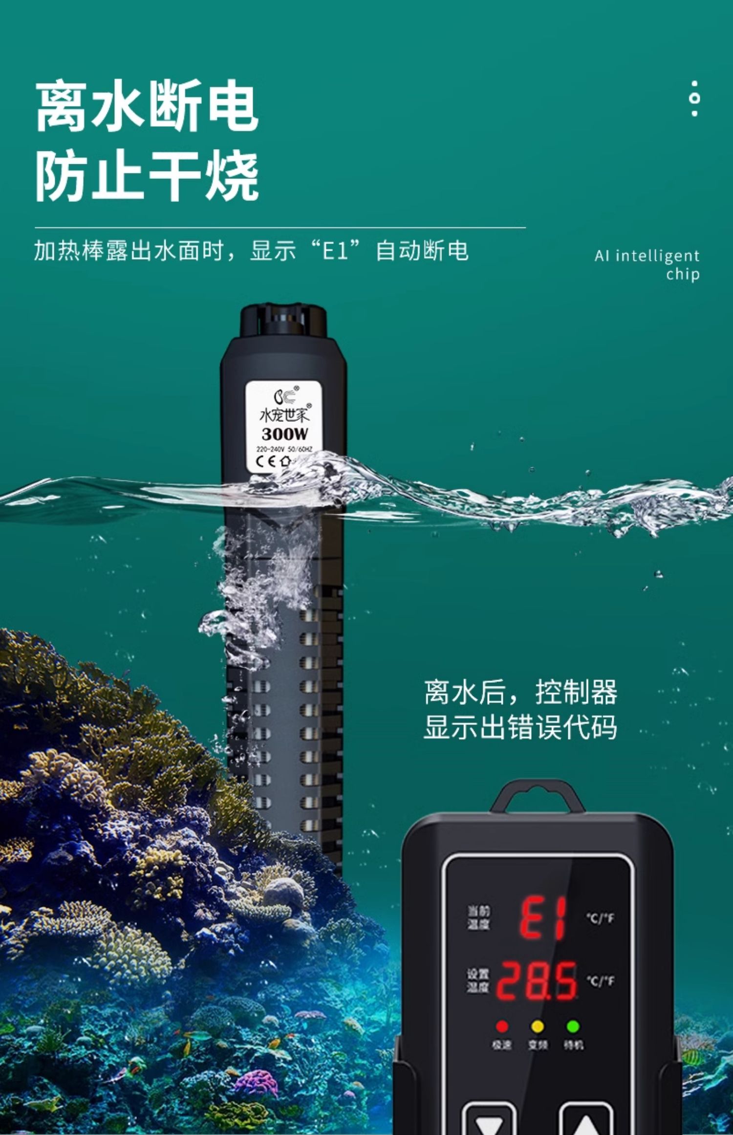 • 석영 디지털 디스플레이/물 및 전원 차단 50w