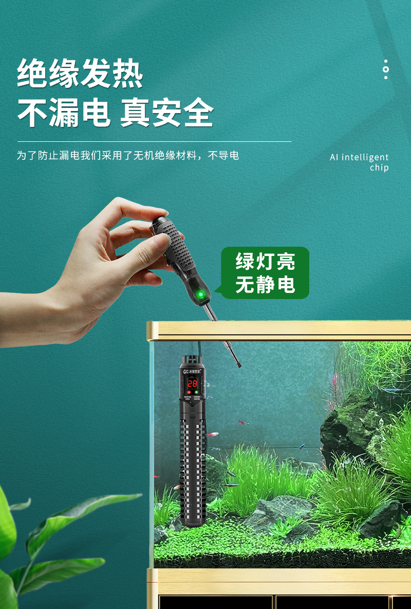 물고기 탱크 가열 막대 히터 물에서 전원을 끄면 가열 막대 자동 일정한 온도 소형 전기 가열 막대 석영 방폭 유리