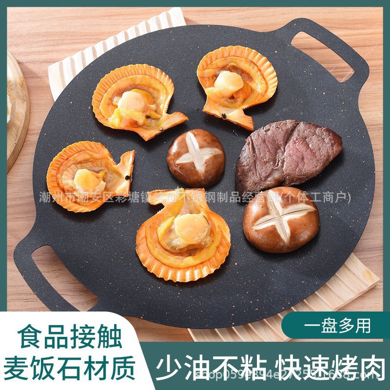 도매 라운드 마이멘 스톤 바베큐 플레이트 야외 캠핑 휴대용 바베큐 플레이트 한국어 비 스틱 튀김 스테이크 철판 베이킹 팬스토어 가기