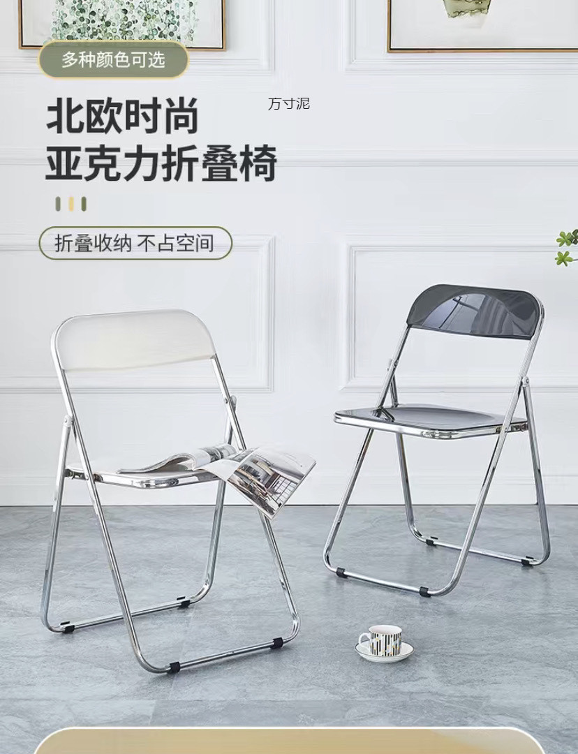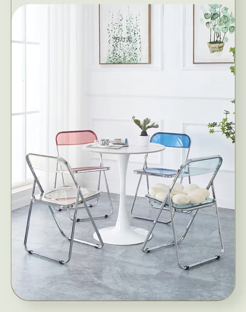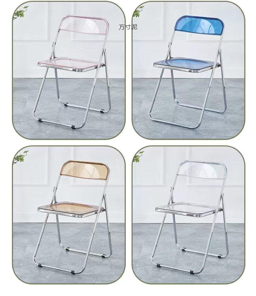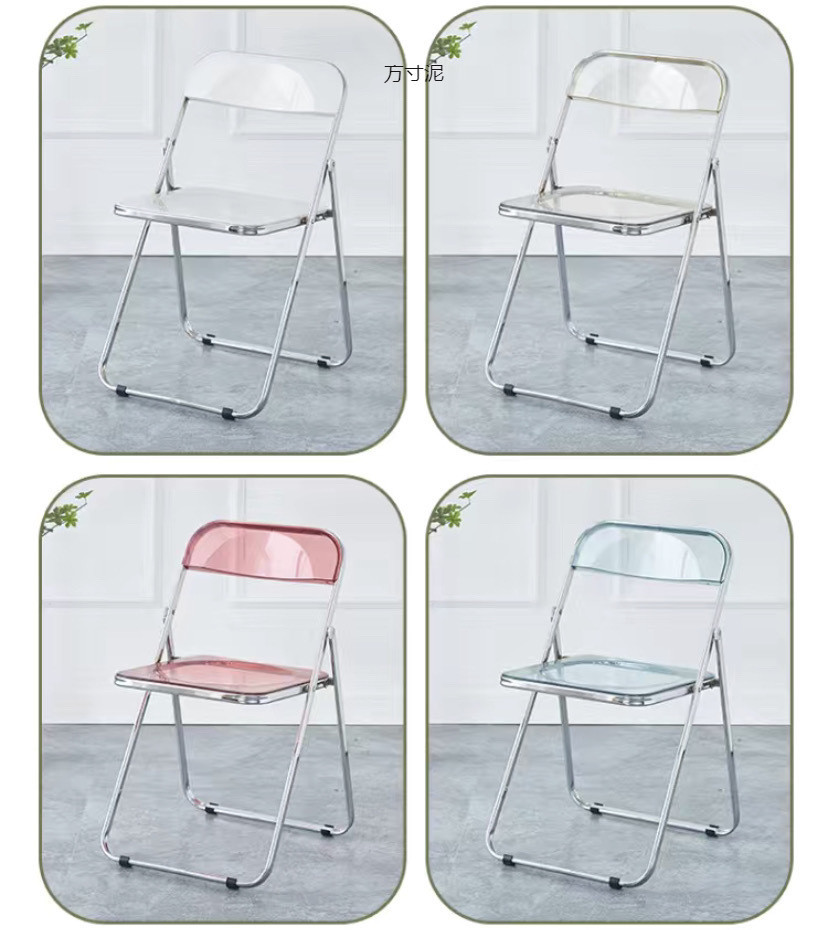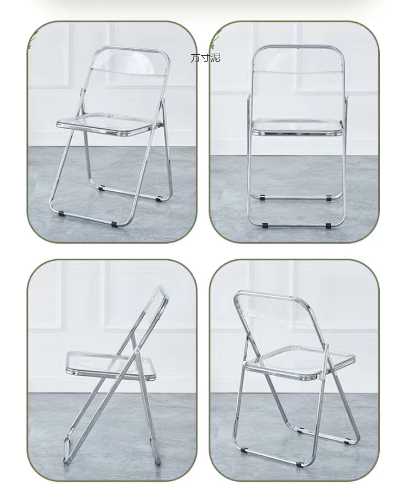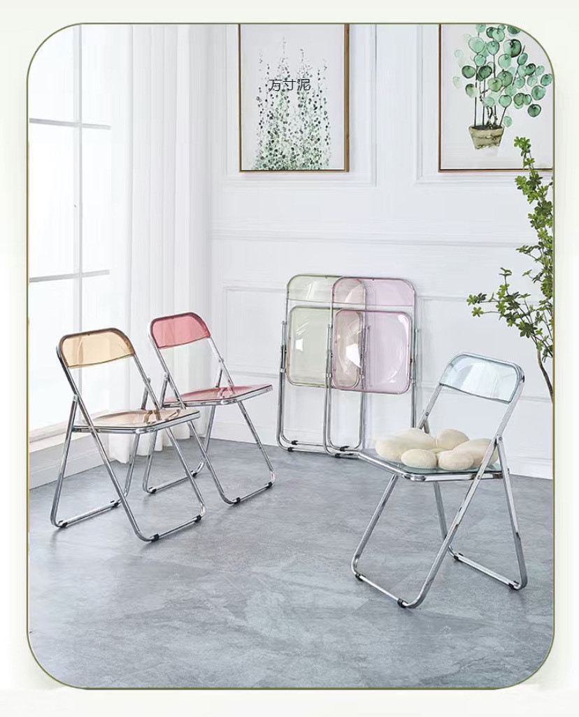 접이식 의자 스타일 아크릴 심플 라이트 럭셔리 패션 전기 도금 의자 스타일 아크릴 접이식 의자 투명 사진